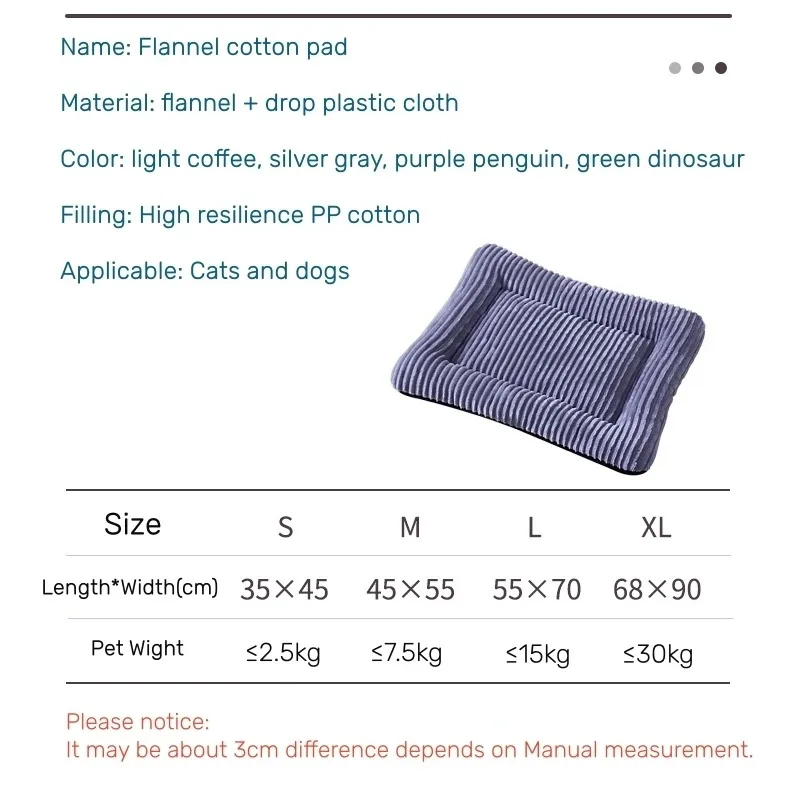 Velour Soft Pet Bed Warm Sleeping Pad for Small Medium And Large Dogs Removable Cover Pet Mat Comfo...
