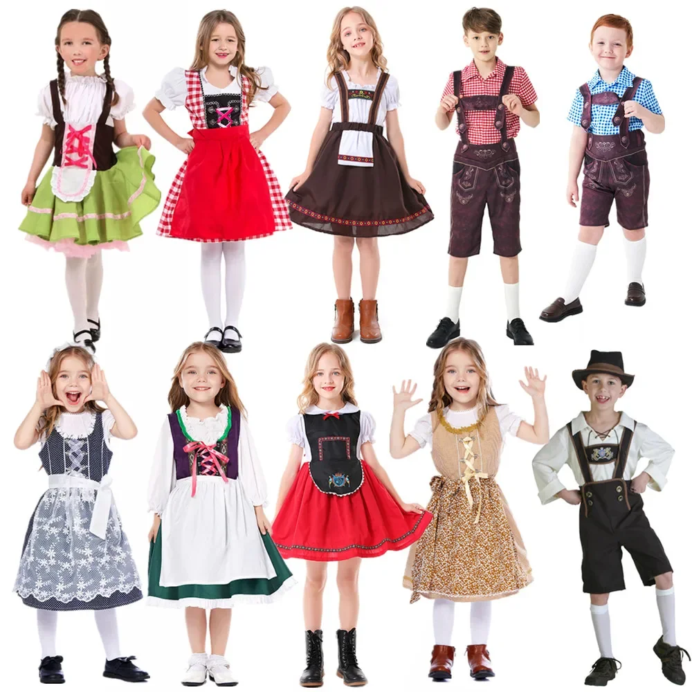 Children's Boys Girl Oktoberfest Costumes Bavarian Dirndl Dress Kids Lederhosen Cosplay Carnival Party Halloween Fancy Dress