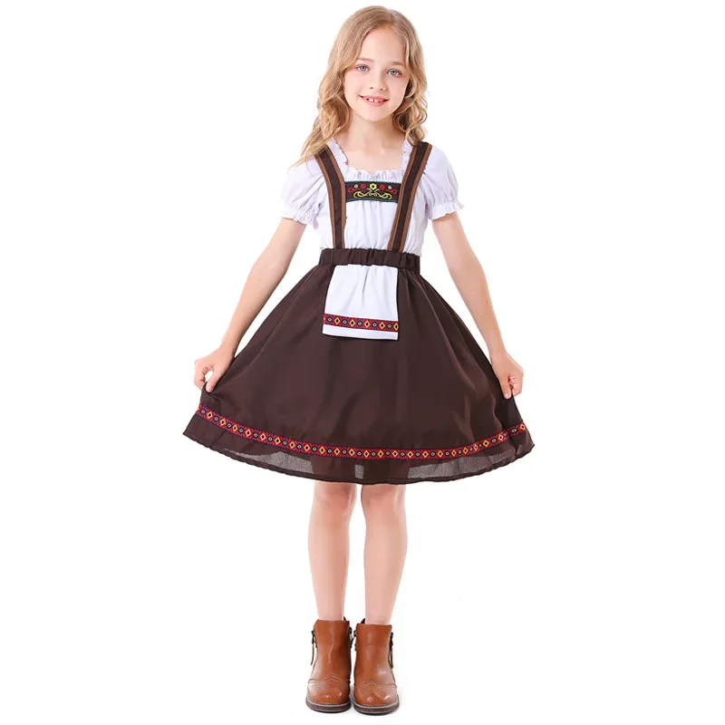Children’s German Dirndl Dress Medieval Farm Maid Cosplay Oktoberfest Costume Kids Carnival P...