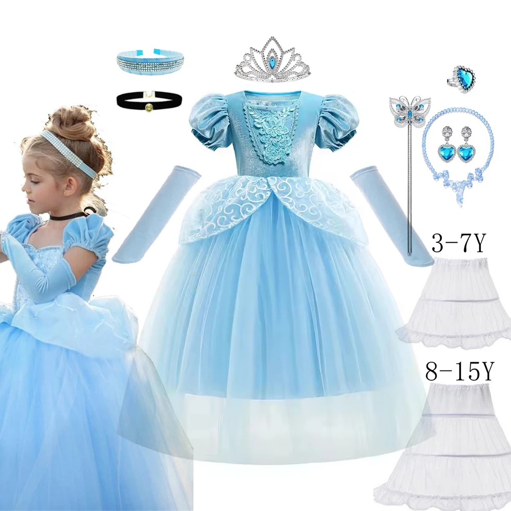Cinderella Costume Girls Princess Cosplay Dress Up Clothes for Girls Christmas Halloween Party Cost...