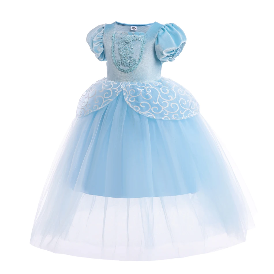 Cinderella Costume Girl Fancy Birthday Party Cinderella Ball Gown with Gloves Embroidery Floral Puffy Kids Princess Party Dress