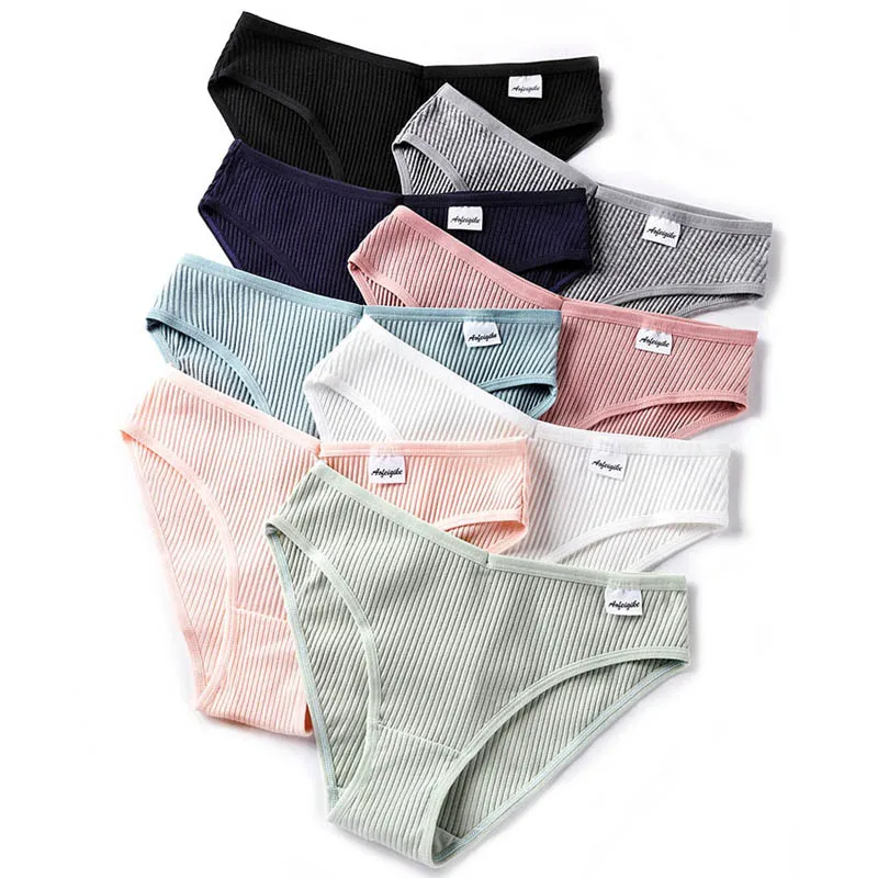 CINOON 3PCS/Set Women's Panties Striped Cotton Underwear Solid Color Briefs Low-Rise Soft Panty Women Underpants Female Lingerie