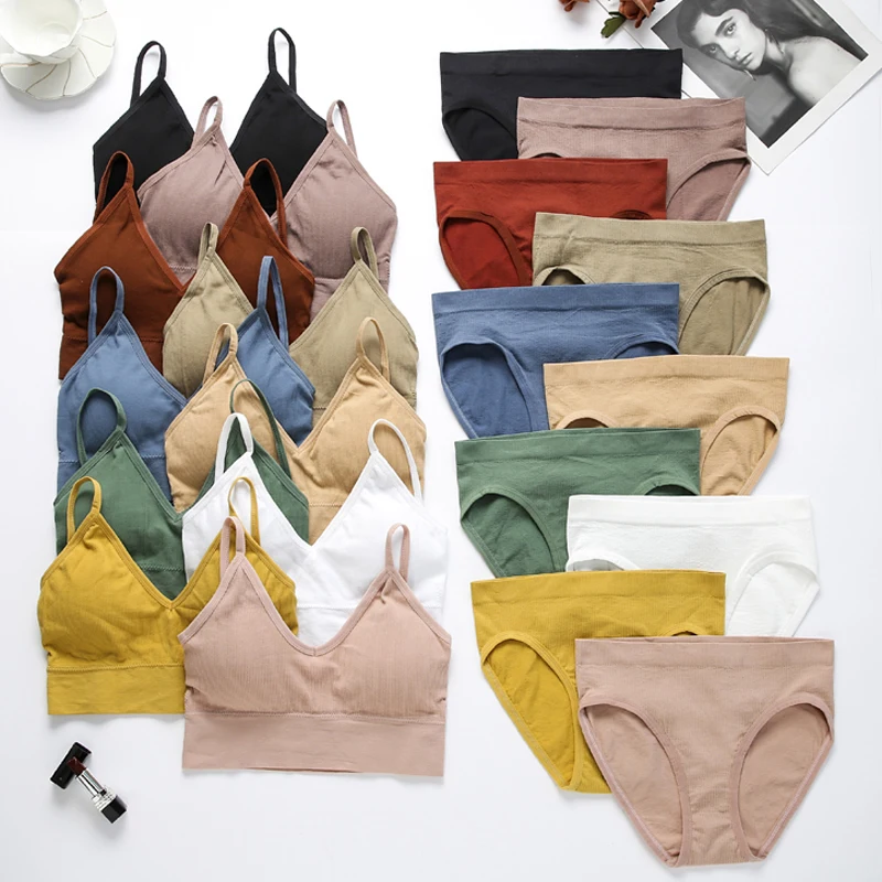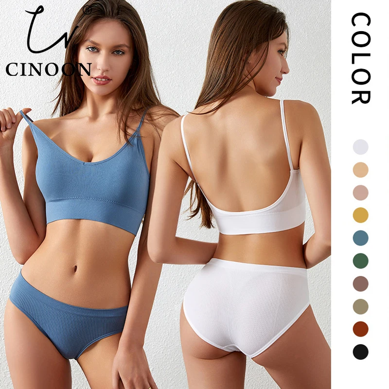 CINOON Sexy Seamless Tops Set Low-waist Panties Women Wireless Underwear Suit Soft Padded Bras Set Backless Bralette Lingerie