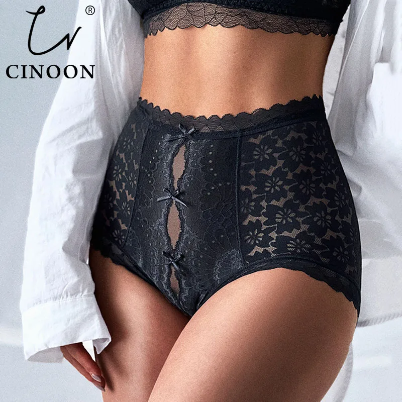 CINOON Sexy Women Panties Lace Underwear High Waist Briefs Embroidery G String Underpant Butt Lift Transparent Female Lingerie