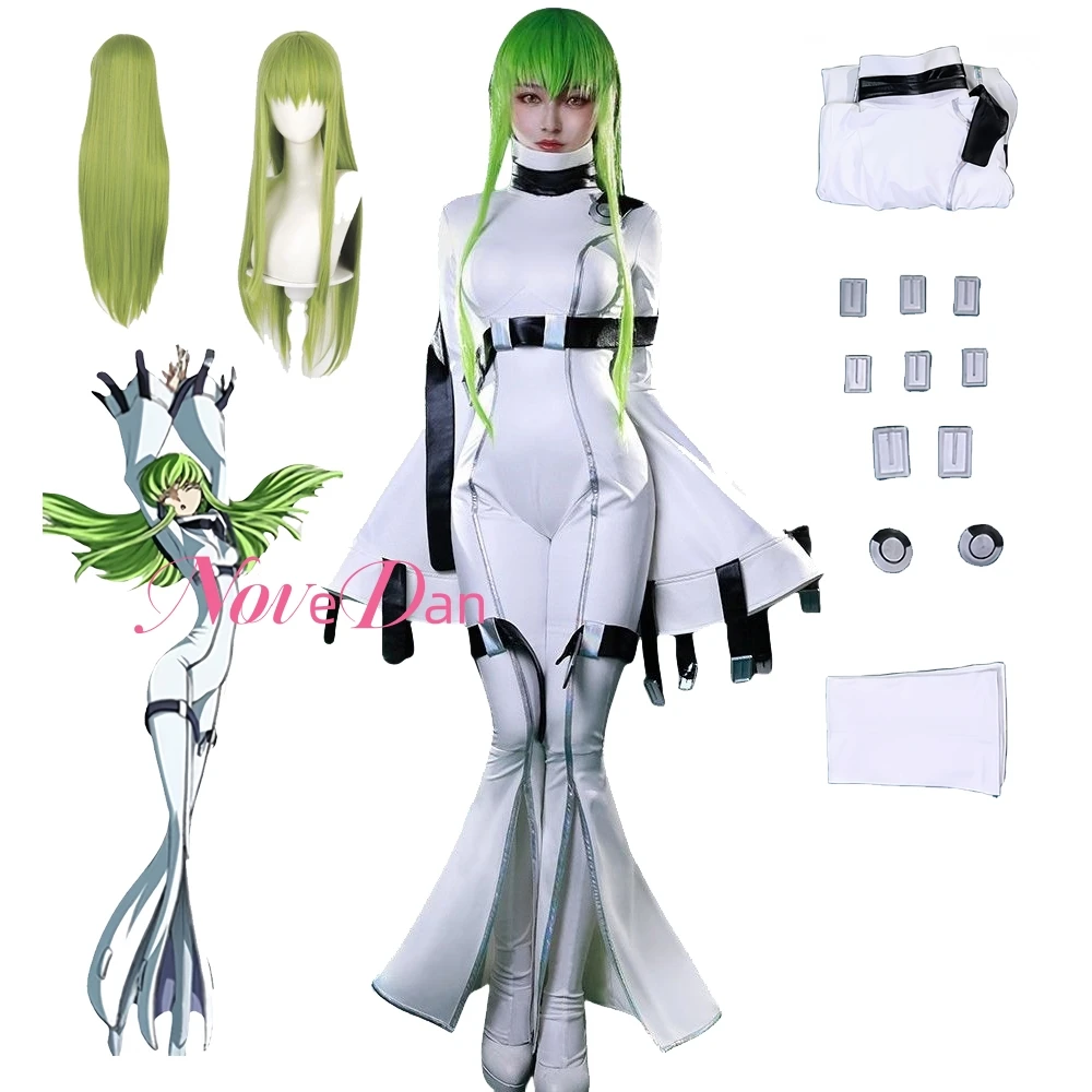 Code Geass Queen CC Cosplay Costume Witch C.C Cosplay Wig C.C. Jumpsuit Anime Halloween Carnival Full Set Uniform Role Play