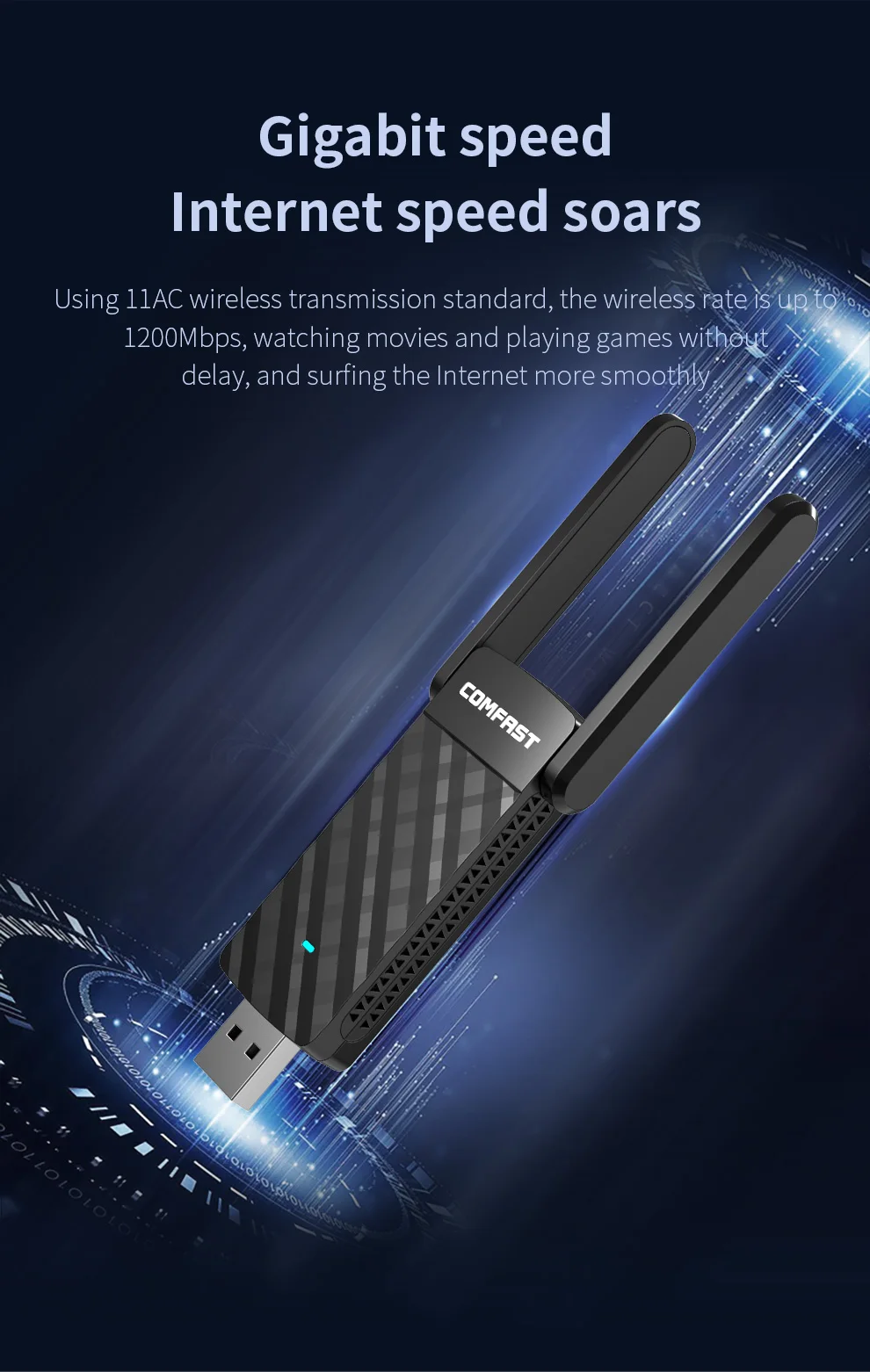 1300Mbps, Enjoy high-speed Internet Dual frequency concurrent, faster transmission