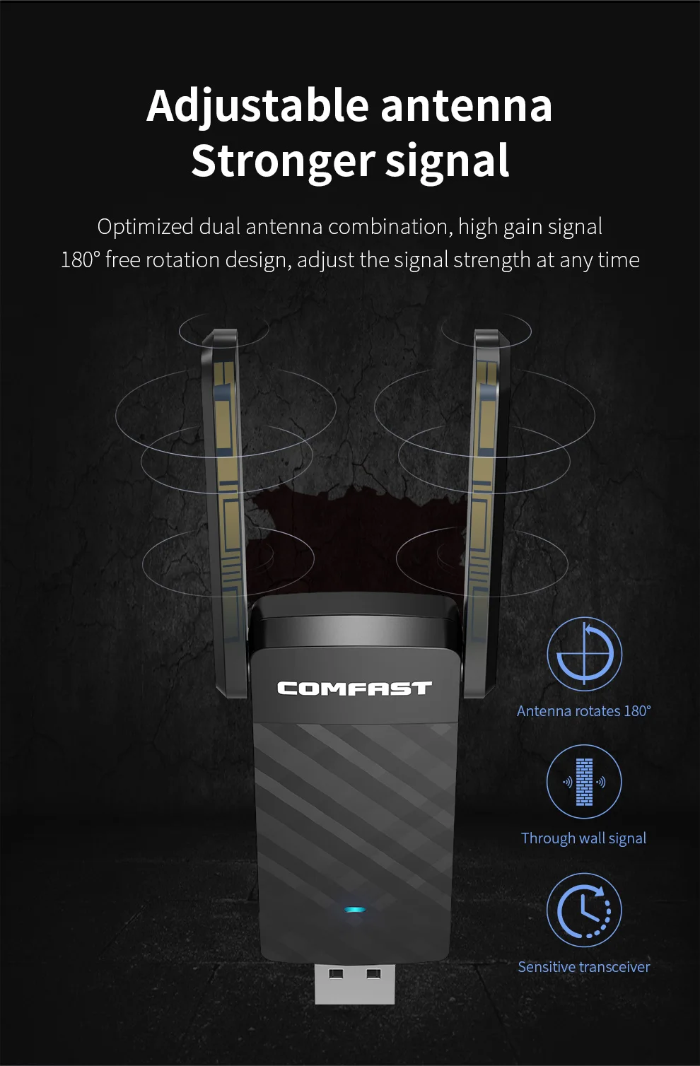 Smart drive-free, plug and play Rotatable dual antenna, no fear of passing through the wall