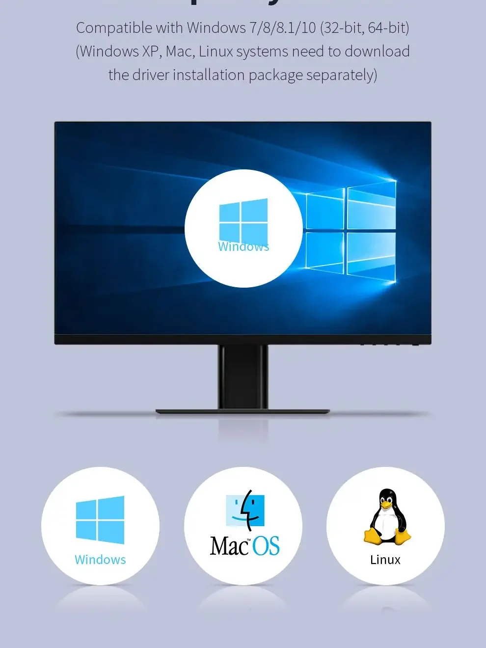 Compatible with Windows 7/8/8. 1/10(32/64bit); Windows XP、Mac、 Linux Systems need to Download The Driver Installation Package Separately
