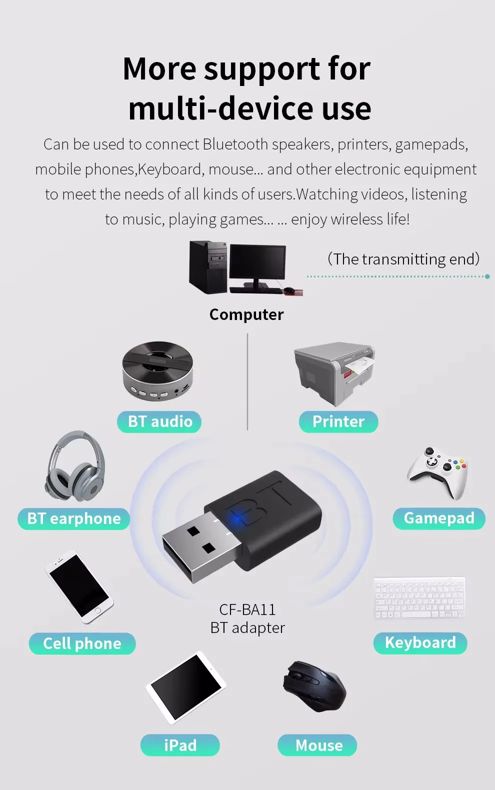 Computer BT audio Printer BT earphone Gamepad Cell phone Keyboard iPad Mouse