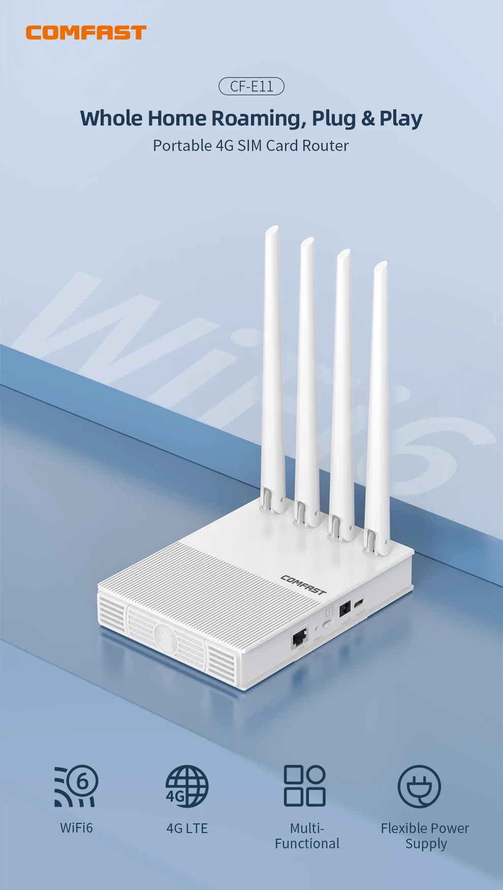 comfast AX300 4G Lte Modem with SIM Card WiFi6 2.4G Outdoor Portable Internet wireless Router ASR1803S Chip 4 Antennas PlugPlay