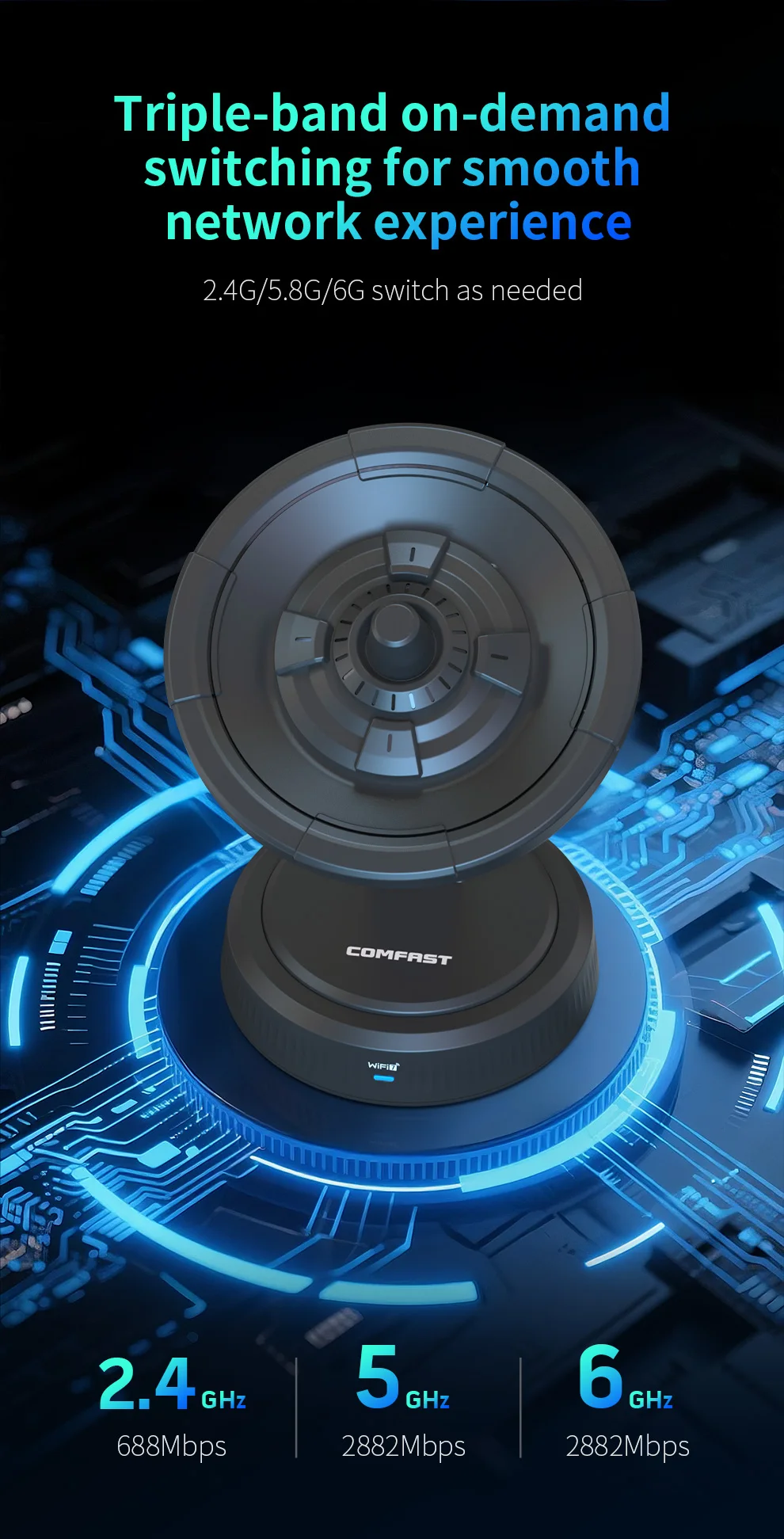 6.Triple band 6452Mbps,Triple band 6452Mbps wireless speed,