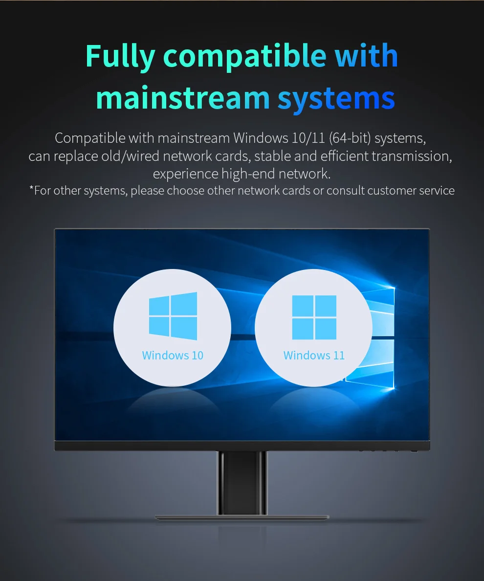 CF-986BE is a BE6500 WiFi7 directional wireless network card with a directional high gain antenna design that enables directional transmission and reception of WiFi signals, providing a stronger signal connection; Triple band 6452Mbps high-speed speed, 2.4&5&6GHz tri band on-demand switching WiFi7 technology, significantly reducing network latency and channel interference, allowing users to enjoy a smooth gaming experience even in highly crowded environments, meeting their high-end network needs!