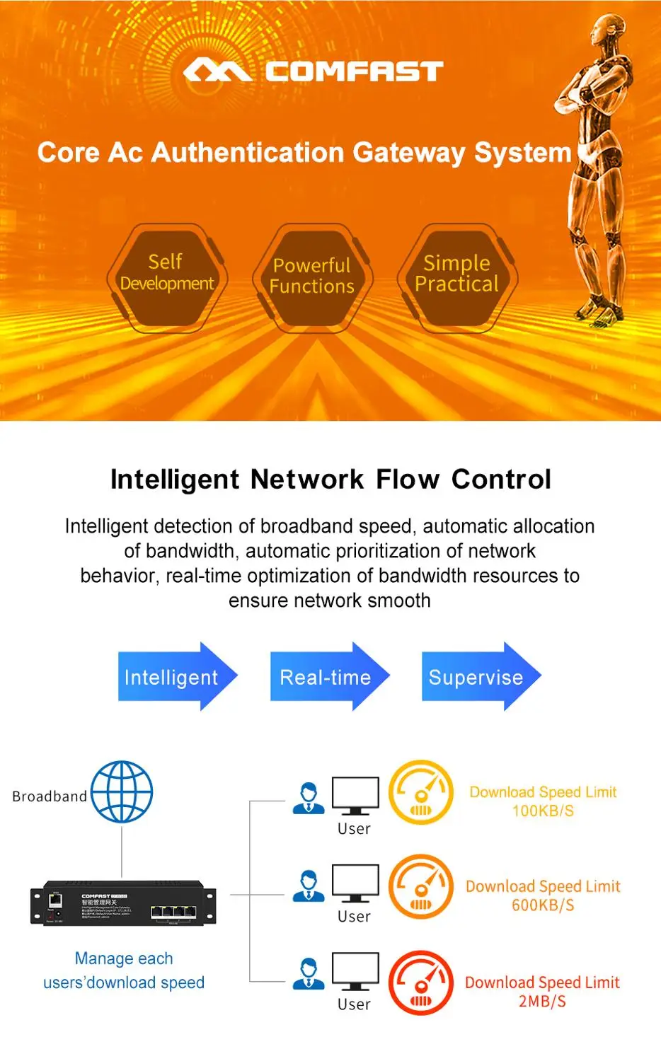 Intelligent detection of broadband speed,automatic allocation of bandwidth, automatic prioritization of network ensure netwok smooth