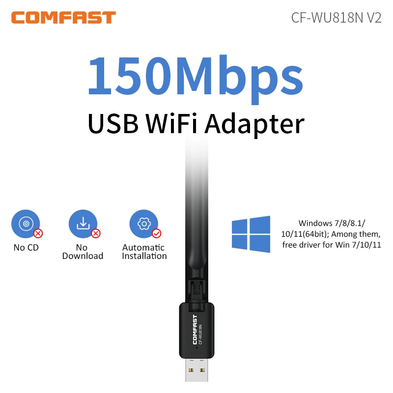 COMFAST RTL8188GU 150Mbps Wifi Usb Adapter 3dBi Antenna Adaptador 2.4G Wi Fi Dongle 802.11n WPA3 Free Driver for PC Win7/10/11