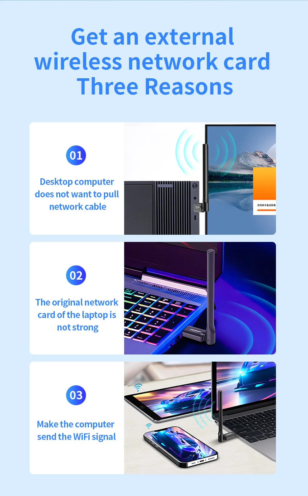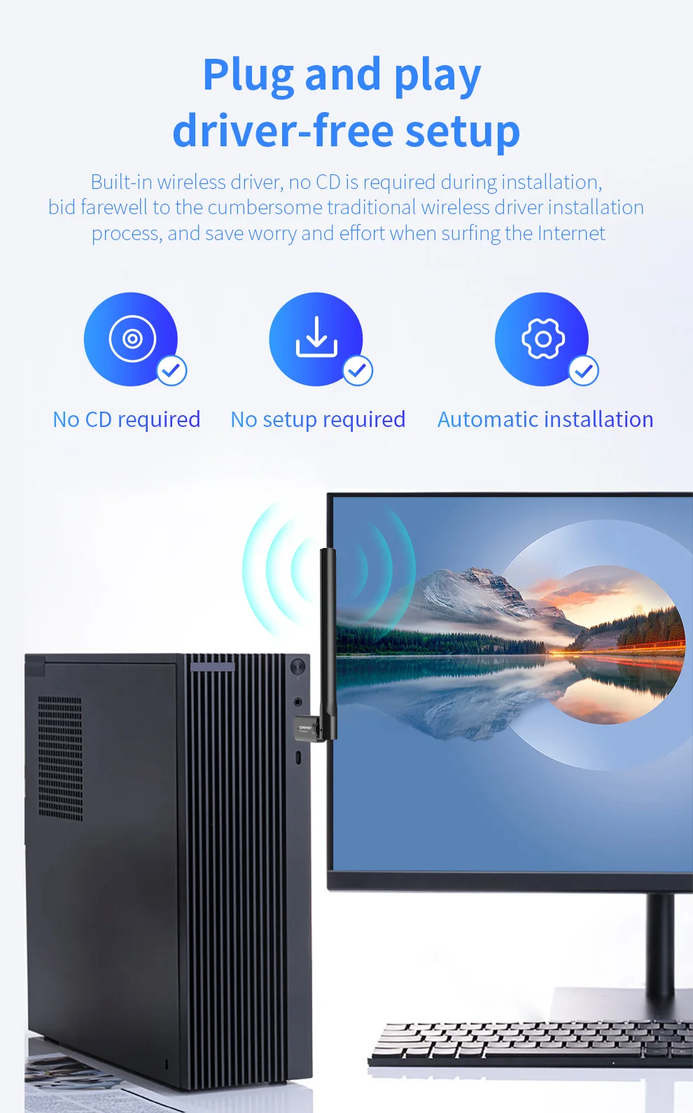| pc wifi adapter Support OS | Support Windows XP/ 8 / 8.1 / 10(32bit /64bit)/11(64bit) system,Where Windows 7/10/11 is drive-free |