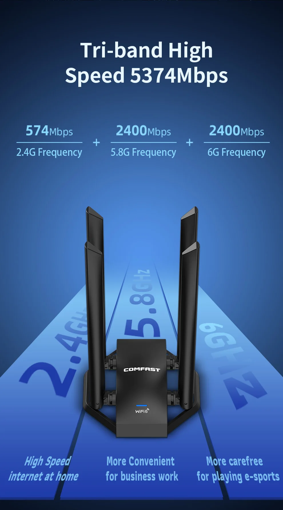 Tri-band band 5374Mbps;Free Driver Plug and Play;WiFi Transmitter / Receiver;High quality