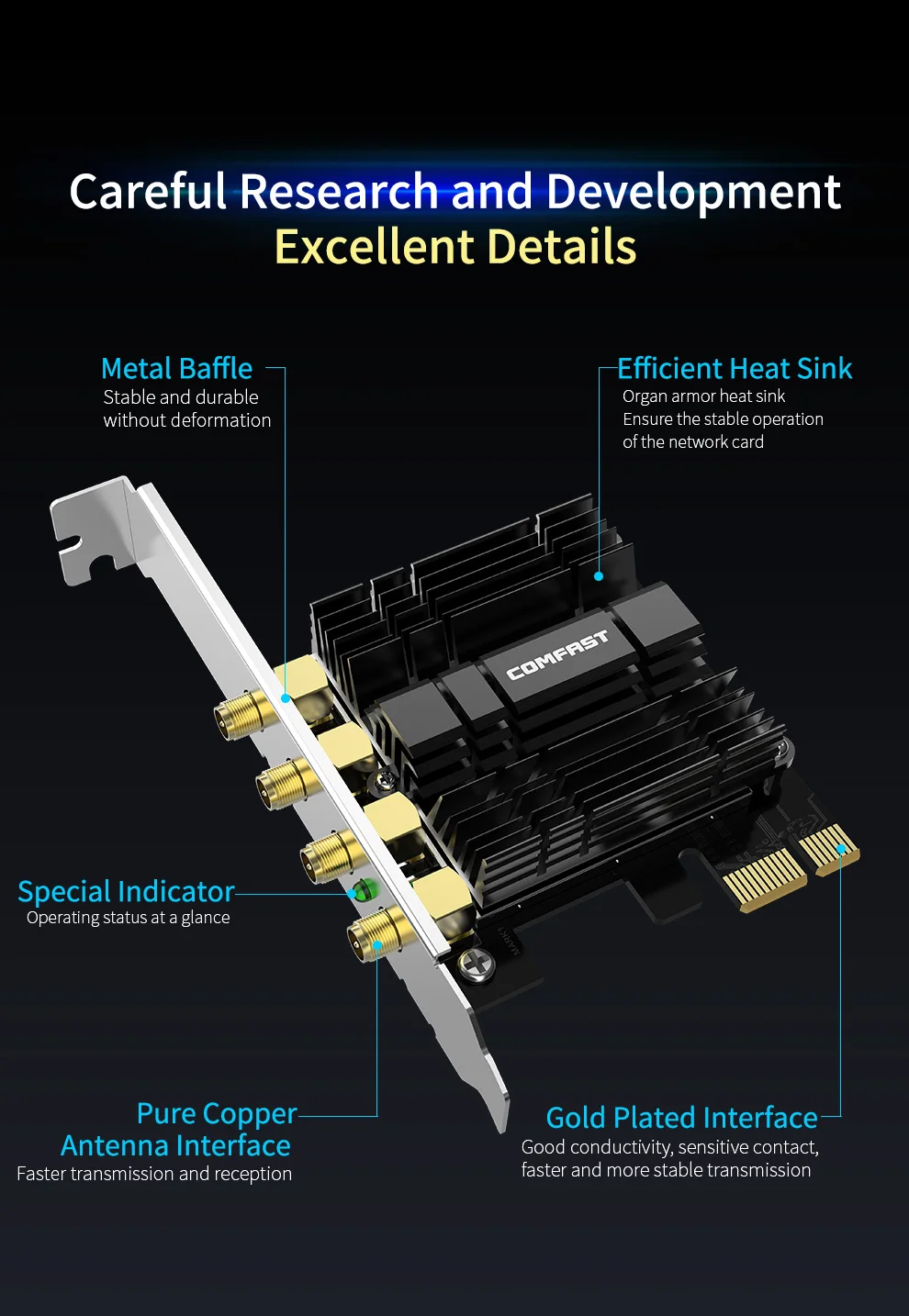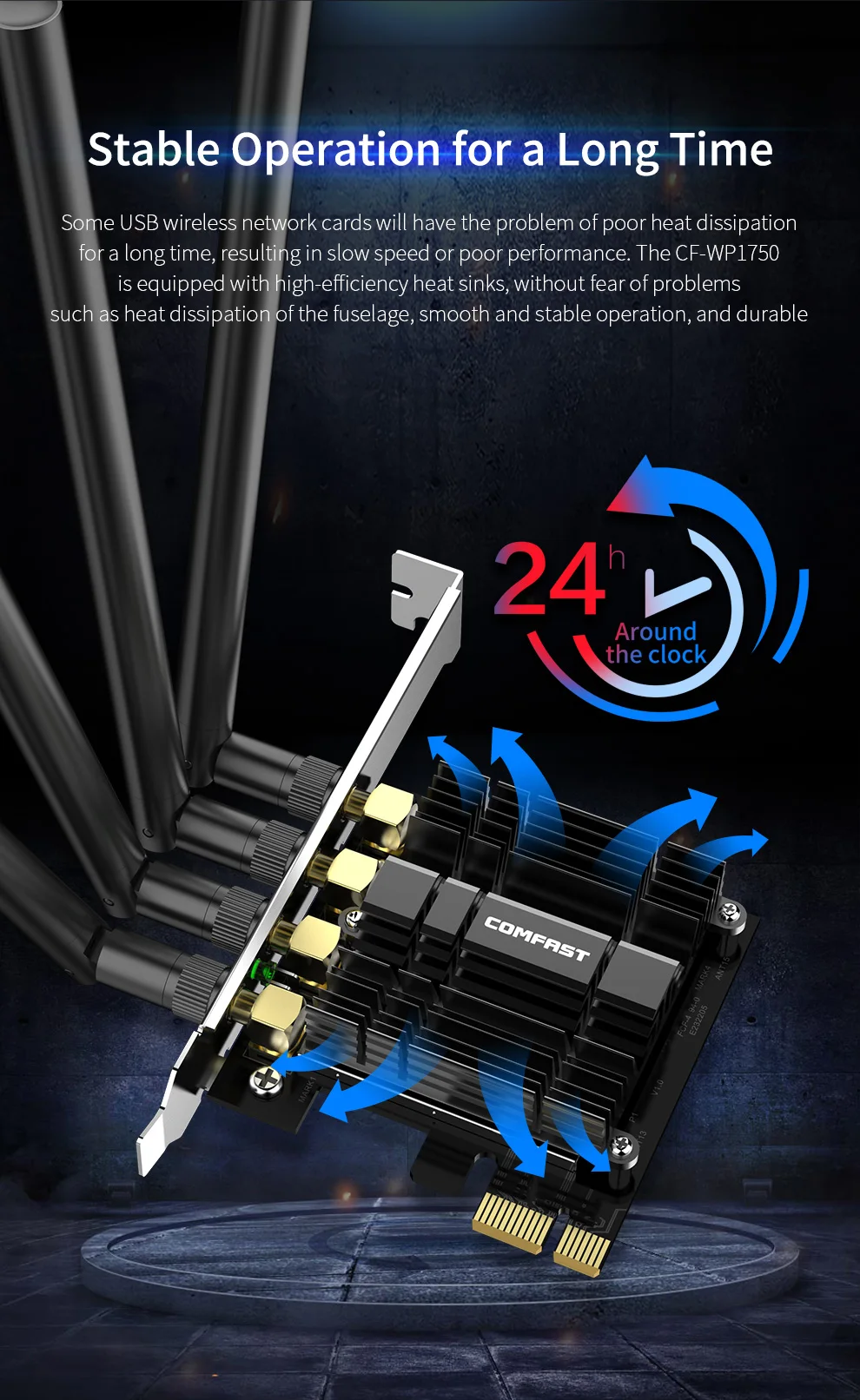COMFAST WiFi 5 PCI-E Wireless Adapter 1750Mbps MU-MIMO 2.4G/5G Wi-Fi Card 4 Antenna Wi Fi PCIe Adaptador For Desktop Win7/10/11