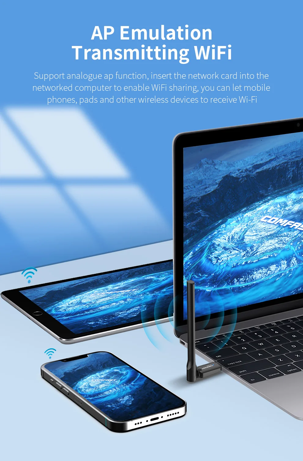 • COMFAST Wifi 6 Placa De Rede Mini Antena Wifi Usb Adaptador 5g/2.4ghz 802.11ax Driver Free Adapter for Para PC Laptop Win 10/11