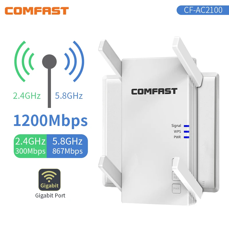 COMFAST Wifi Repeater 1200-2100Mbps Repetidor 5G 802.11AC OLED Display Wi fi Range Extender Signal Booster 4 Antenna Puissant