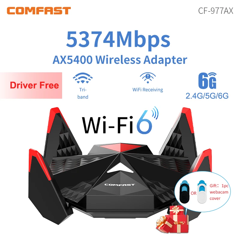 COMFAST WiFi6 USB Wireless Adapter 4 Antennas E-sports Game WiFi Dongle WPA3 RTL8832CU AX5400 2.4G/5G/6G Network Card Win10 11