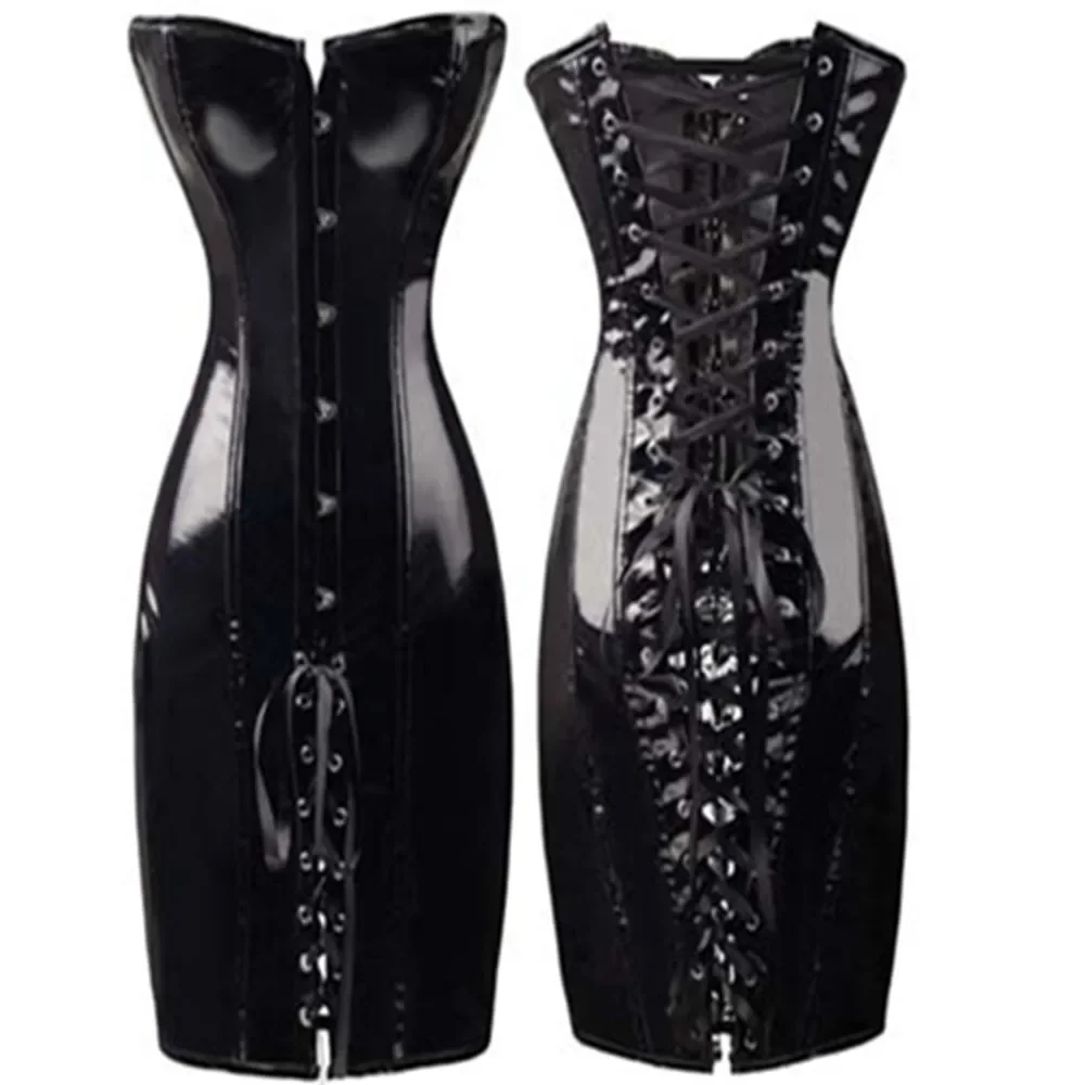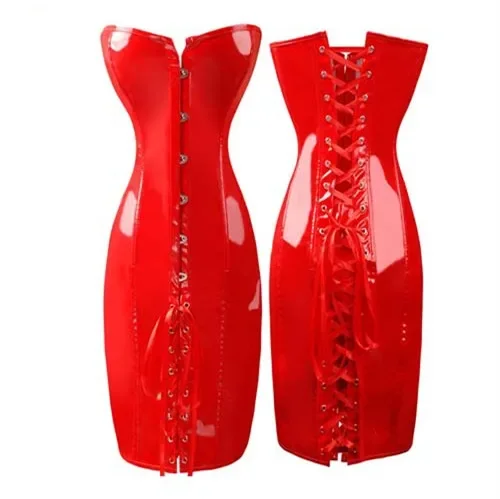 Corsets And Bustiers Punk Style Slim PVC Leather Corselet Dress Long Torso Korsett Overbust Women Clothing Lingerie Plus Size