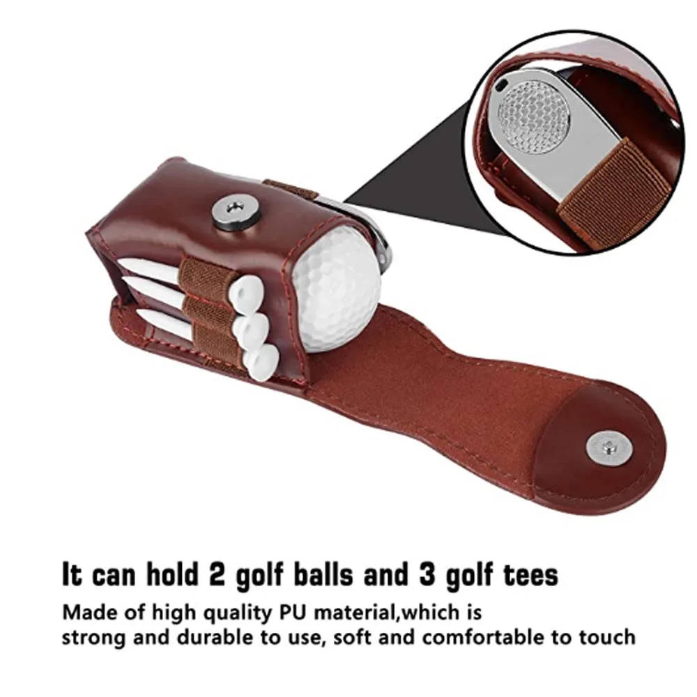 Cowhide Leather Golf Balls and Tees Holder Divot Tool Carrier Pouch Bag Storage Case with 2 Balls Gift
