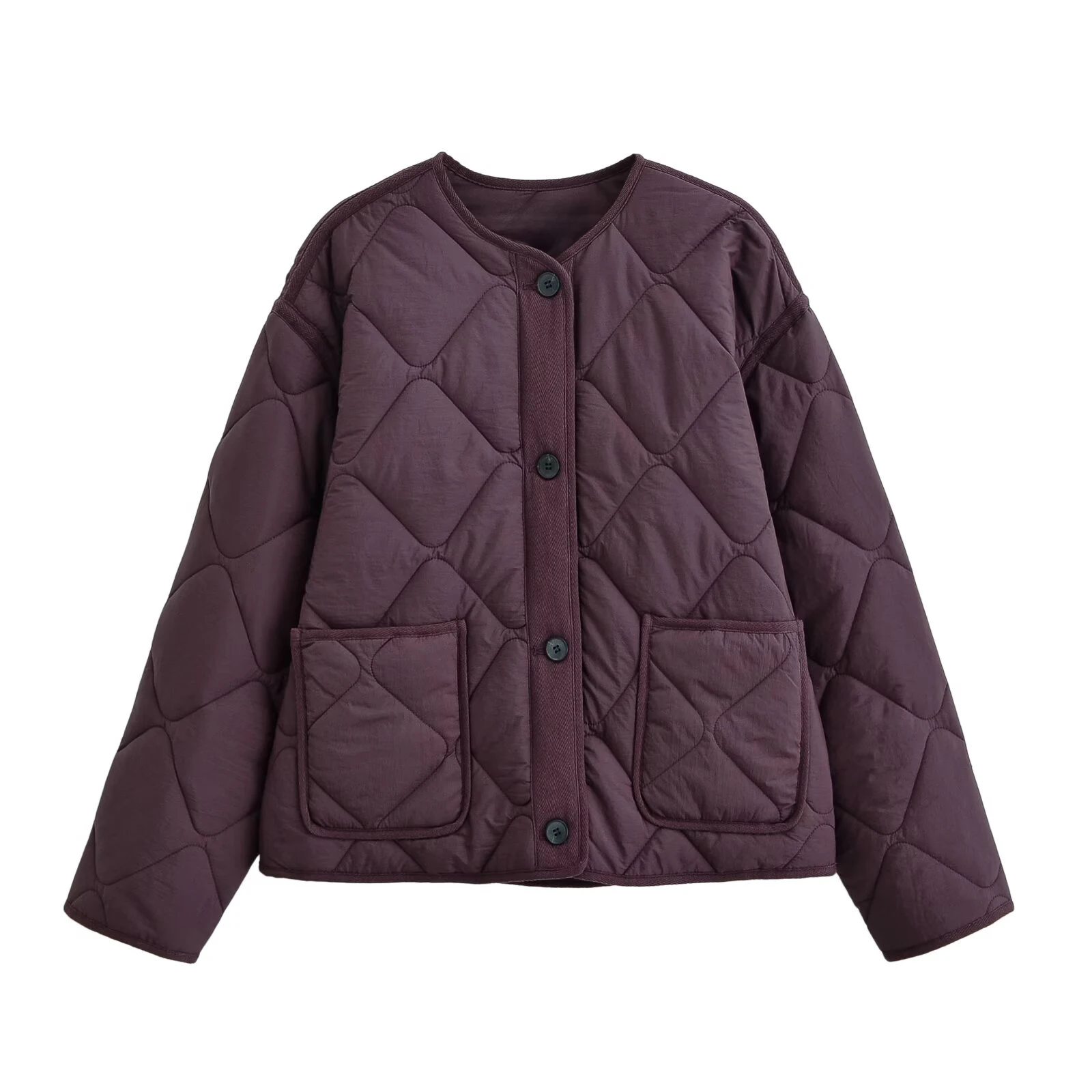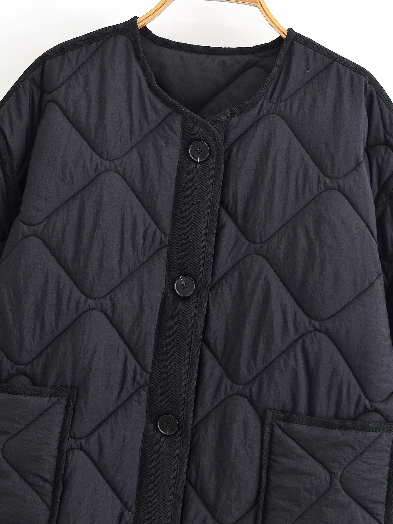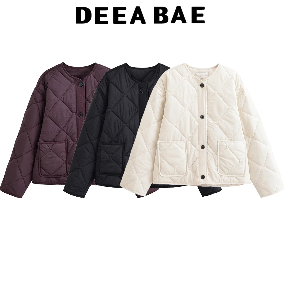 DEEABAE 2025 Autumn New Women’s Round Neck Pocket Decoration Waterproof Cotton Jacket Coat