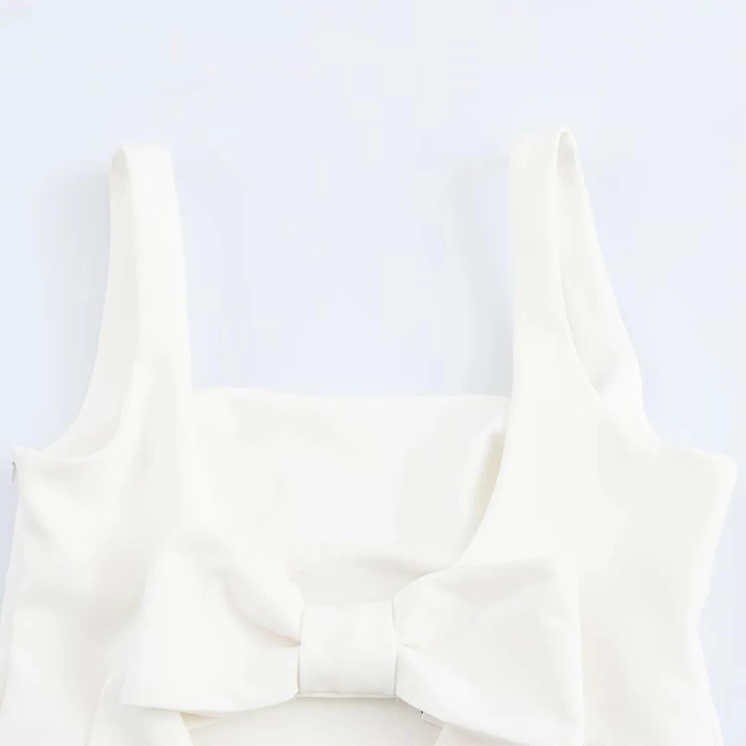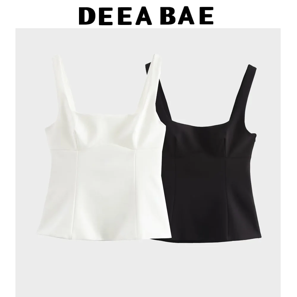 DEEABAE 2025 Early Spring New Sweet Back Bow Temperament Slim Fit Waist Cinching Puffy Suspender Top