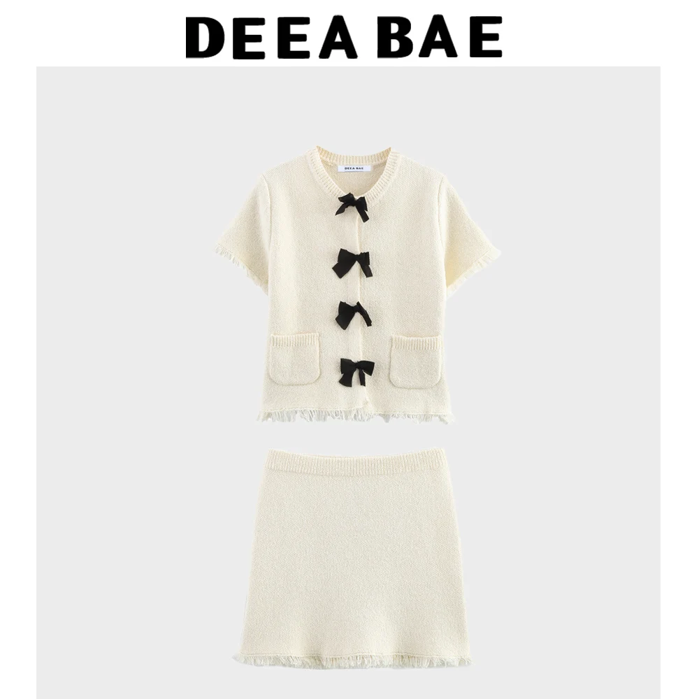 DEEABAE 2025 Spring And Autumn New Women's Wear Bow Decoration Temperament Knitted Jacket Hairy Mini Skirt