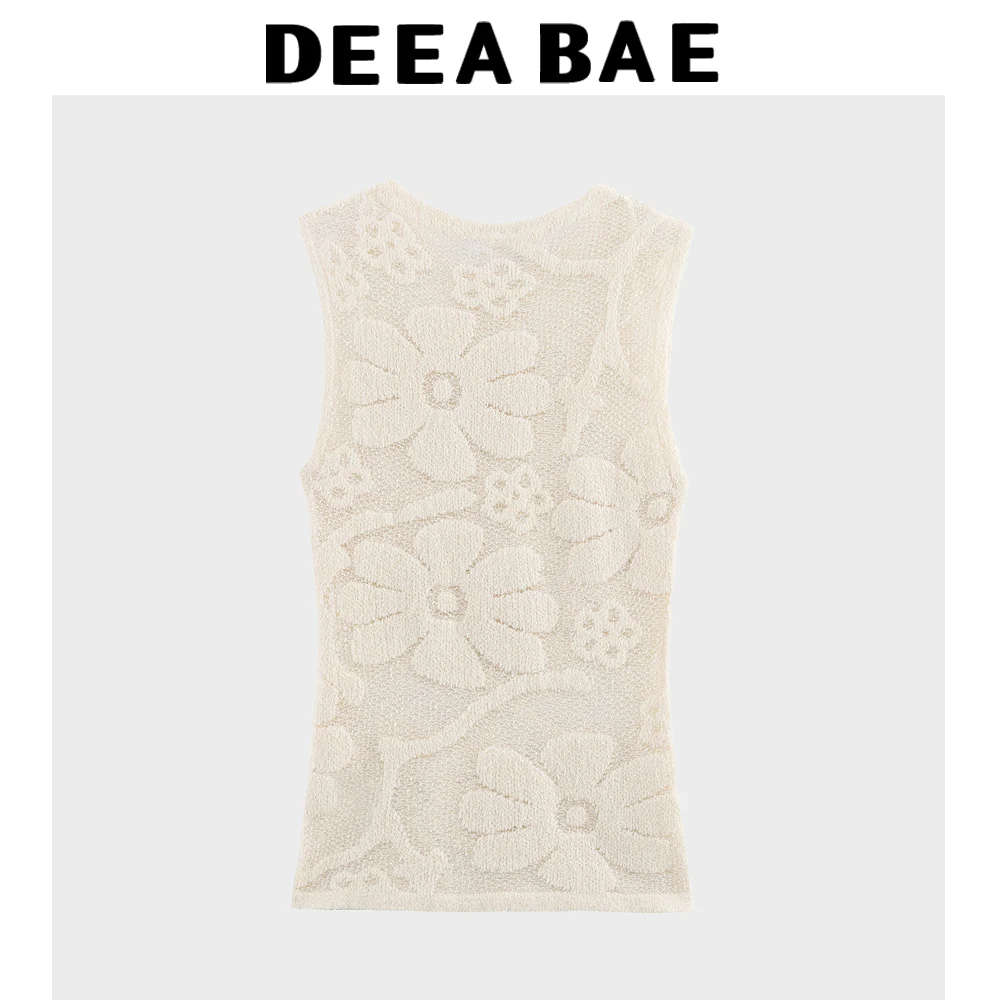 DEEABAE 2025 Spring And Summer New Product Women’s Flower Fashion Printed Texture Round Neck Sleeveless Knitted Shirt