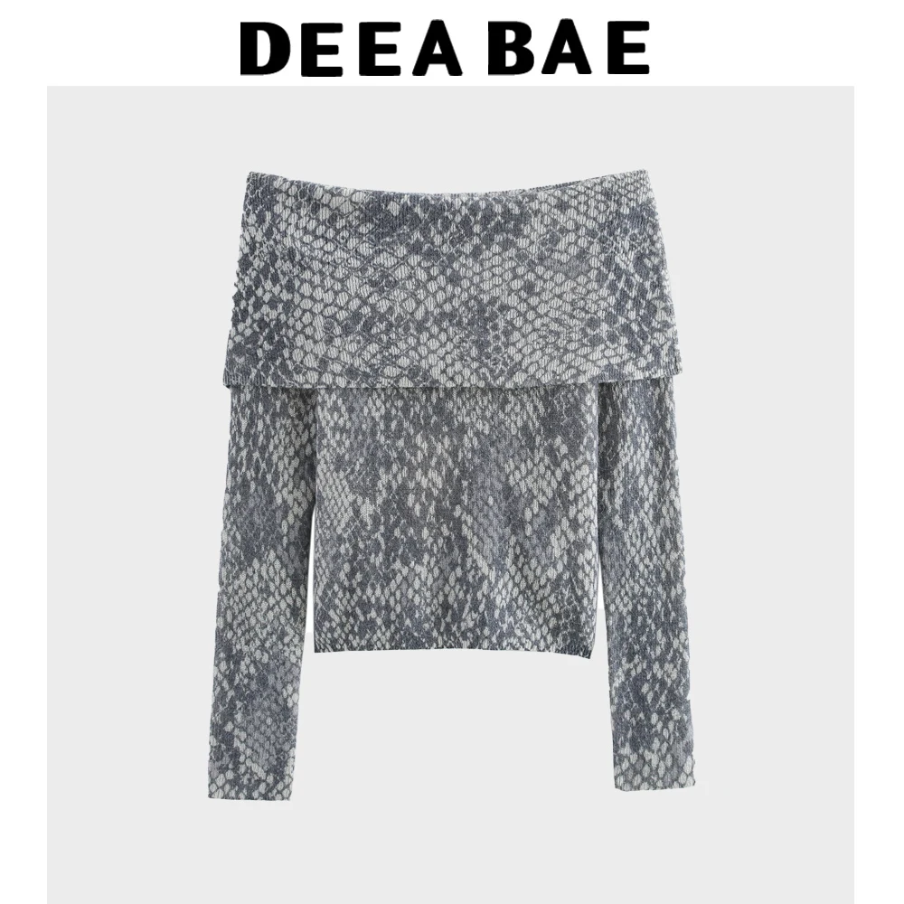 DEEABAE 2025 Spring New Product Women's Clothing Animal Jacquard Straight Collar Off Shoulder Long Sleeve Casual Knitted Shirt