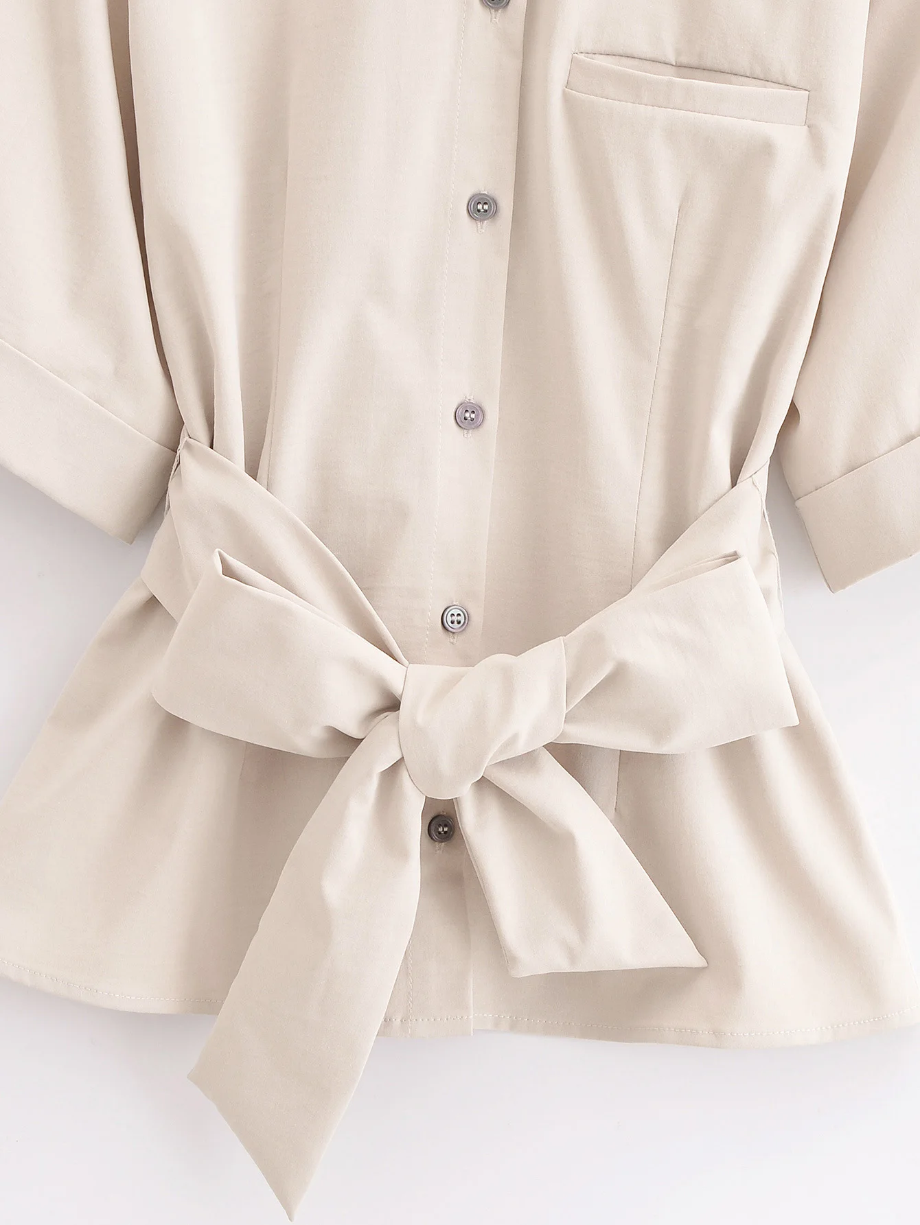DEEABAE 2025 Spring New Product Women’s Waist Belt Tripping Belt Decoration Curled Edge Short Sleeve Collar Shirt