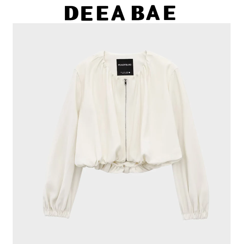 DEEABAE 2025 Spring New Women’s Clothing Style Fashionable And Casual Versatile Short Flower Bud Round Neck Coat