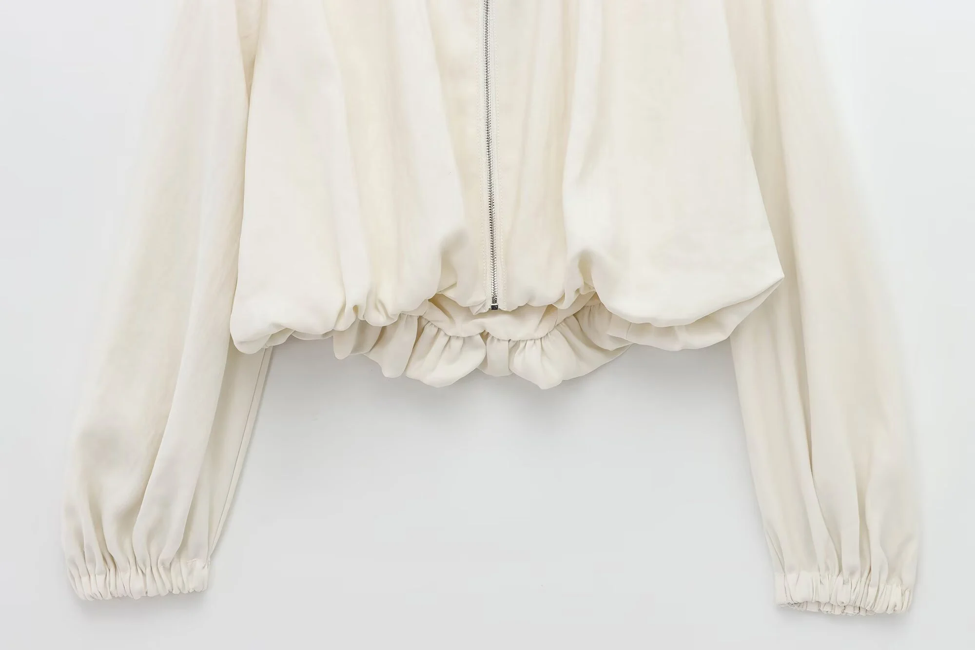 DEEABAE 2025 Spring New Women's Clothing Style Fashionable And Casual Versatile Short Flower Bud Round Neck Coat