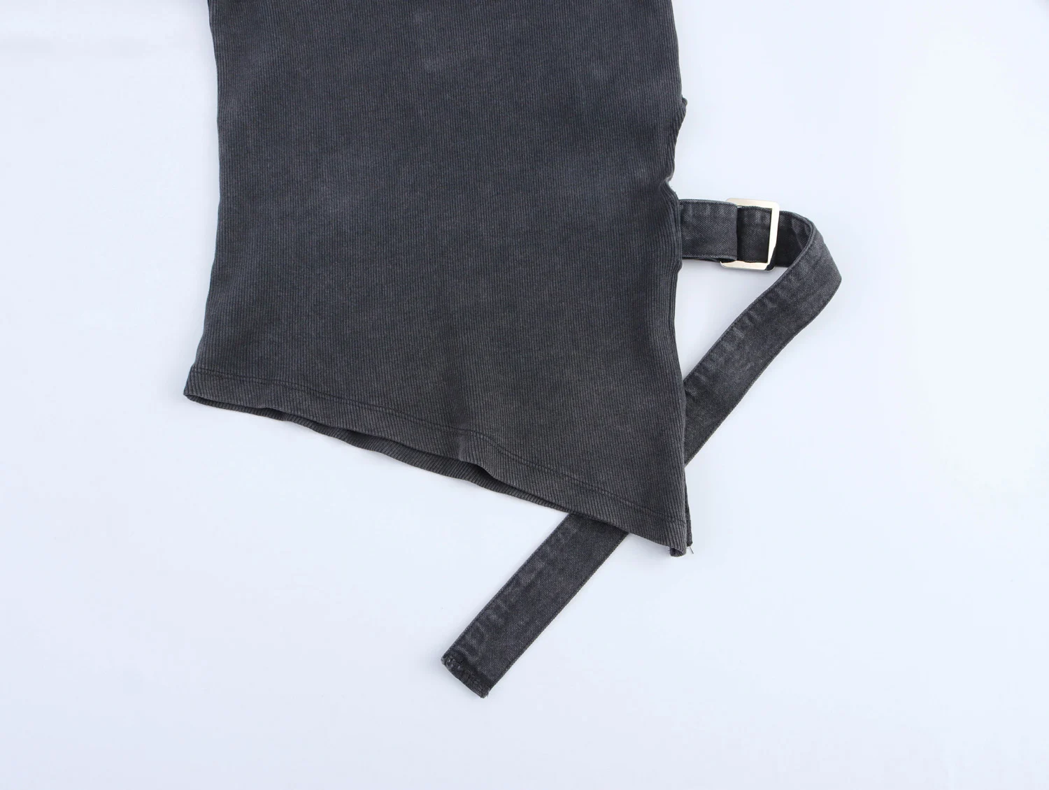 DEEABAE 2025 Spring New Women’s Fashion Matching Belt Ribbed Diagonal Bottom Round Neck Long Sleeve T-shirt