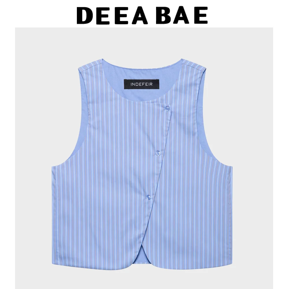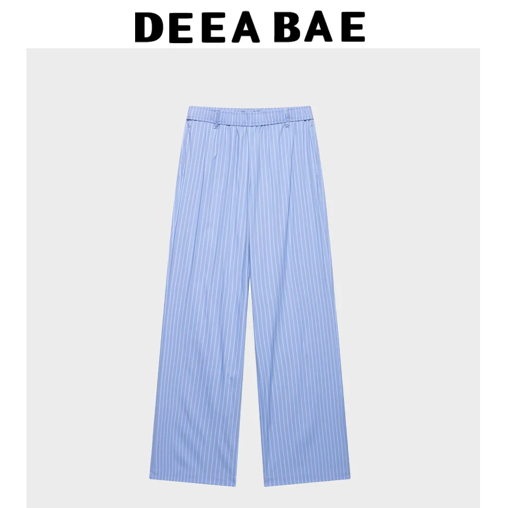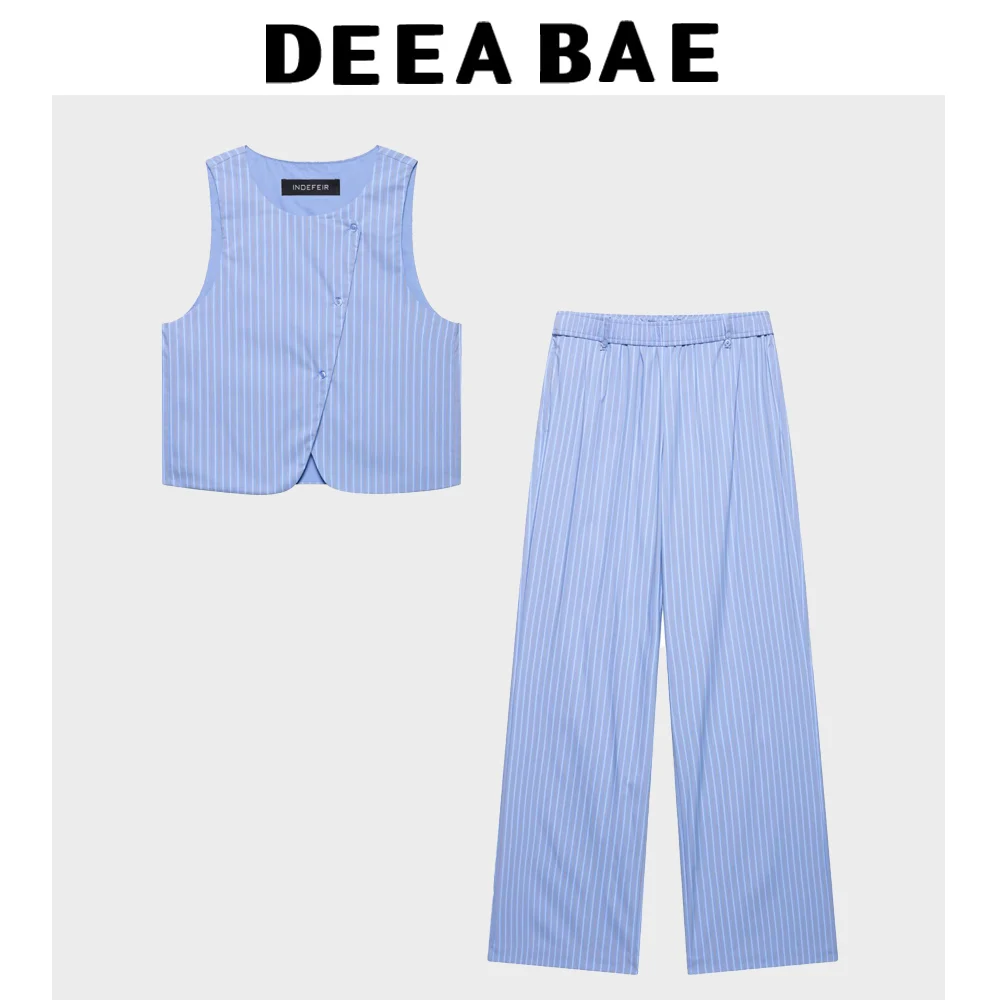 DEEABAE 2025 Spring/Summer New Product Women's Striped Sleeveless Round Neck Tank Top Vest Style Mid Waist Pants
