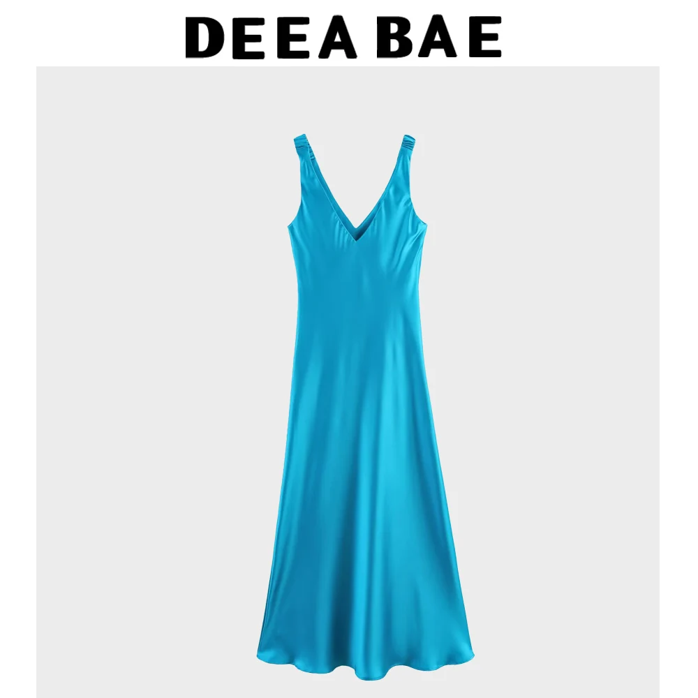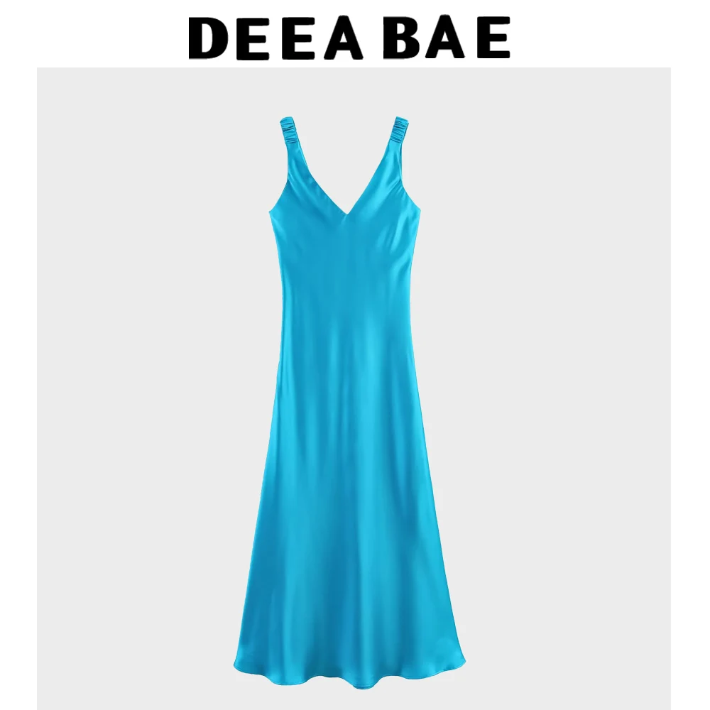 DEEABAE 2025 Spring/Summer New Women's Clothing Sexy Temperament Silk Texture Sleeveless Strap Midi Dress