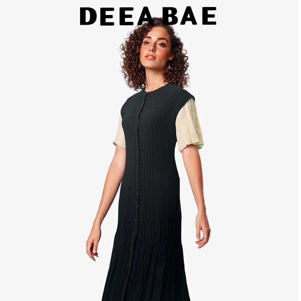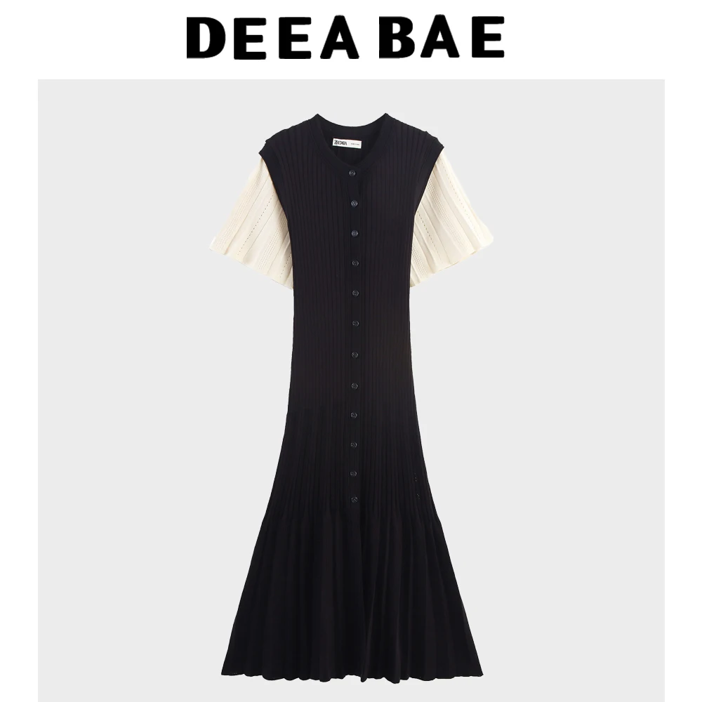 DEEABAE 2025 Summer New French Elegant Fragrant Style Slimming, Waist Cinching, Hollow Out, Slimming Fish Tail Knitted Dress