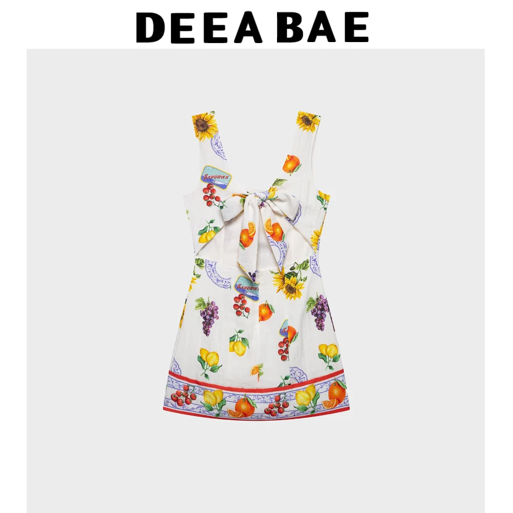 DEEABAE 2025 Summer New Independent Station Casual Fashion Printed Sleeveless Strap Dress With Bareback Strap