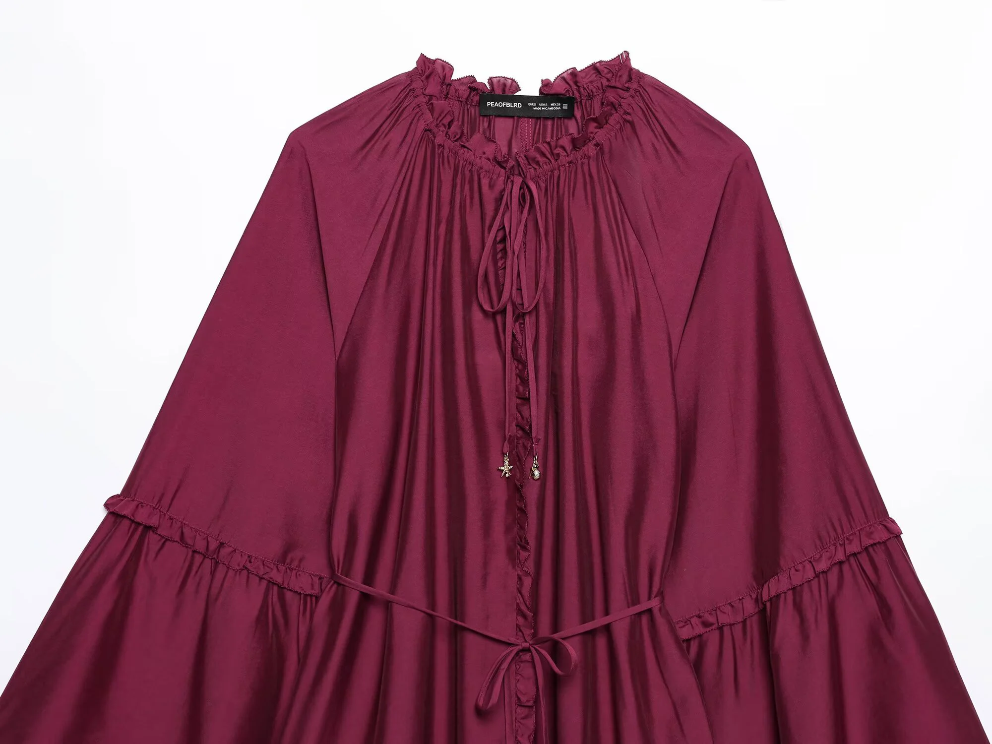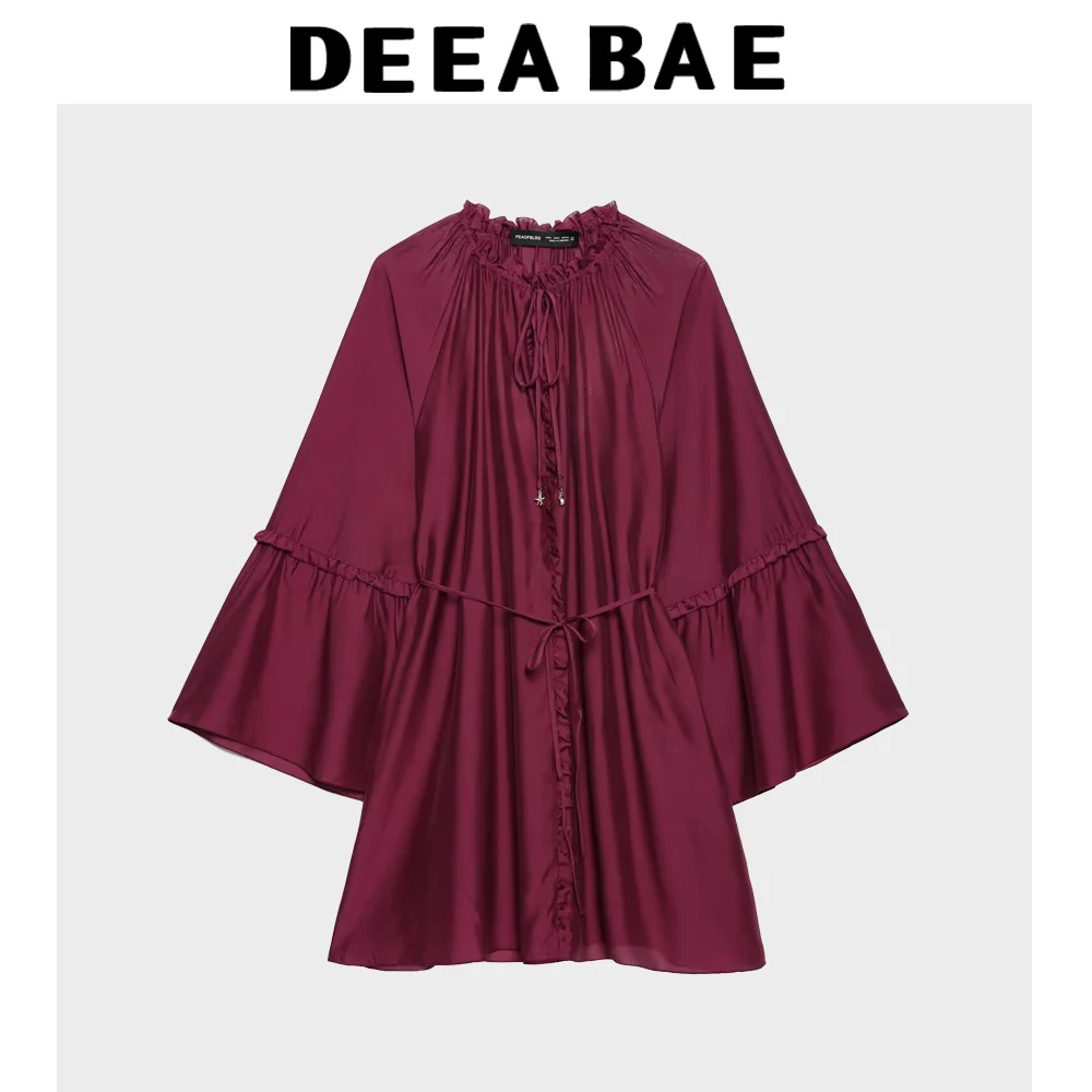 DEEABAE 2025 Summer New Lace Up Pajama Style Flared Sleeve Skirt Long Sleeved Short Jumpsuit Women’s Clothing