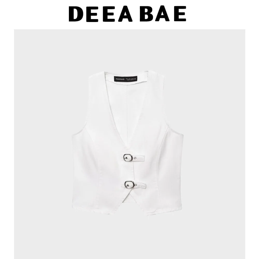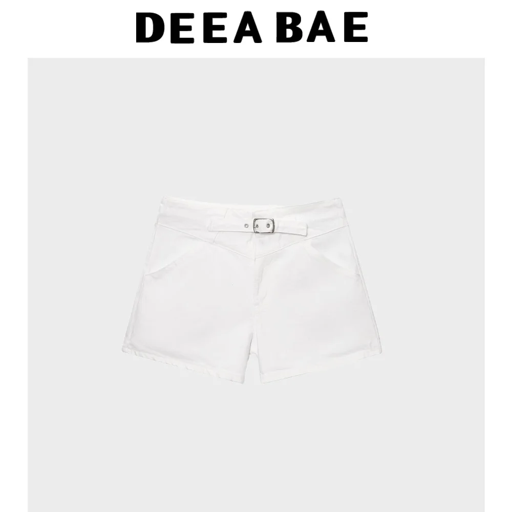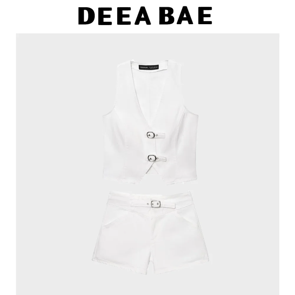 DEEABAE 2025 summer new product temperament buckle decoration denim casual vest front belt decoration shorts set