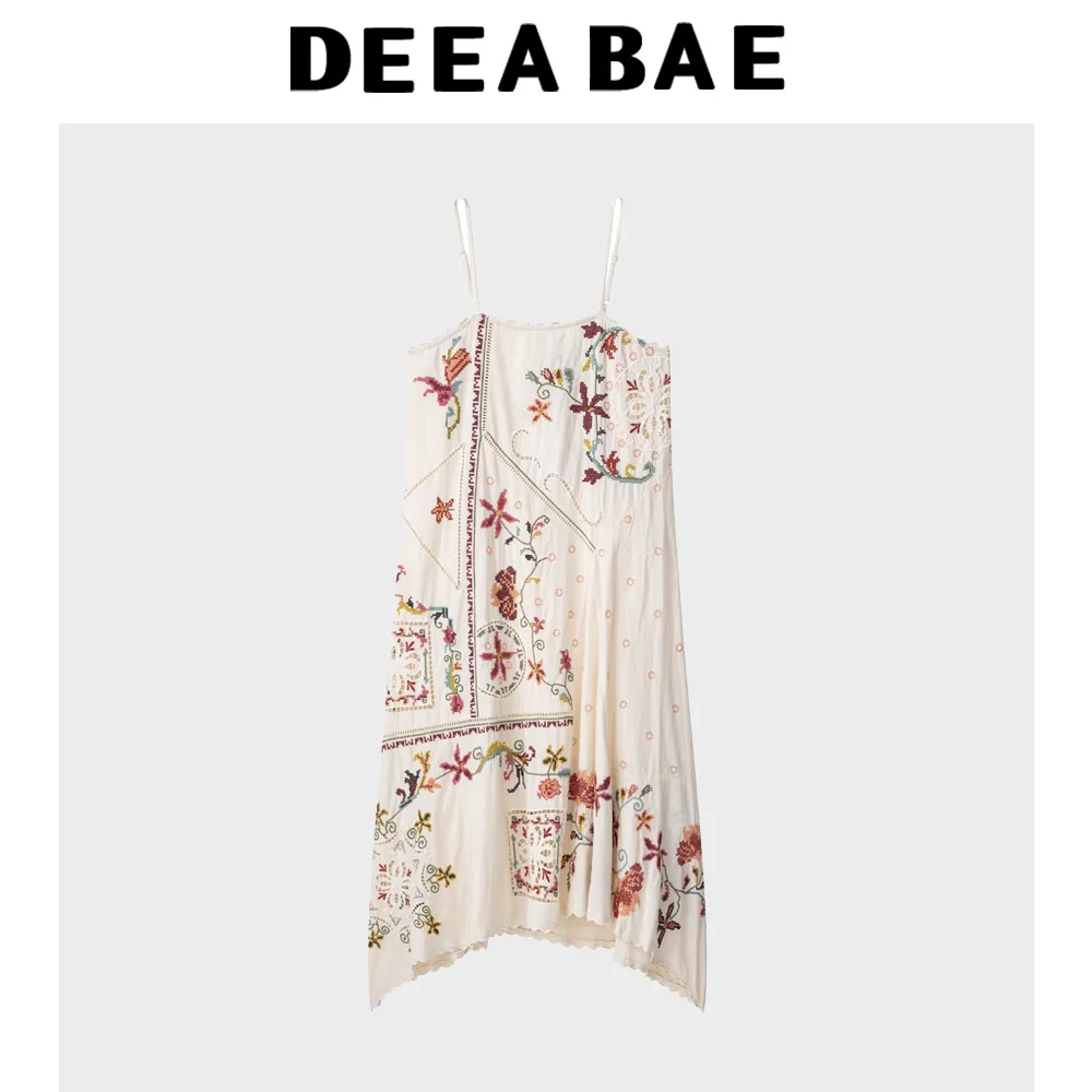 DEEABAE 2025 Summer New Sexy One Piece Embroidered Asymmetric Strap Dress, Concealing Meat and Showing Weight