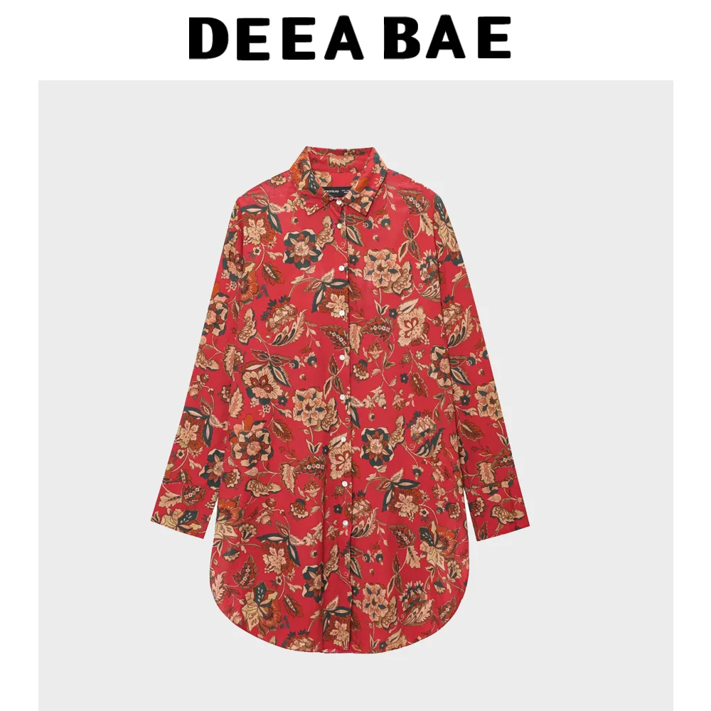 DEEABAE 2025 summer new women’s clothing fashion temperament simple retro versatile printed long sleeved lapel long shirt