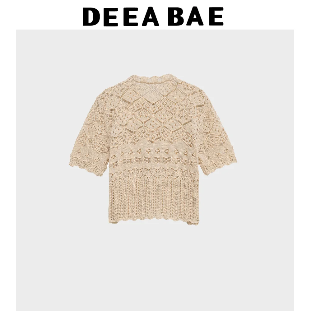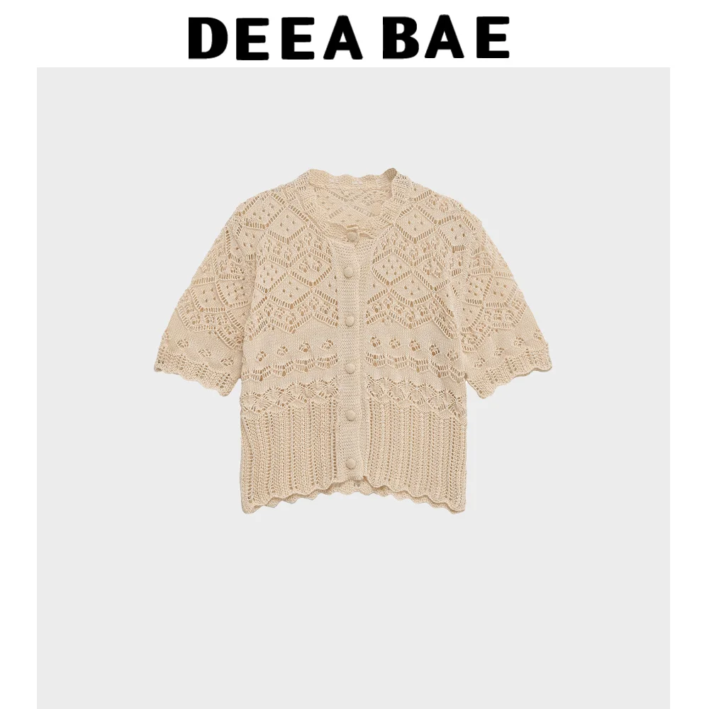 DEEABAE 2025 Summer New Women’s Clothing Simple And Fashionable Jacquard Mesh Round Neck Short Sleeved Knitted Jacket
