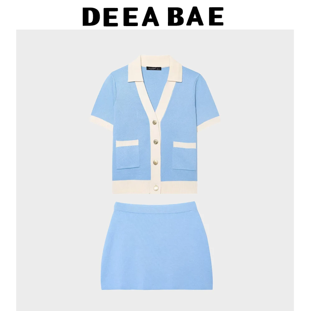 DEEABAE 2025 Summer New Women's Clothing Simple And Fashionable Lapel Short Sleeved Knitted Jacket Mini Skirt Set