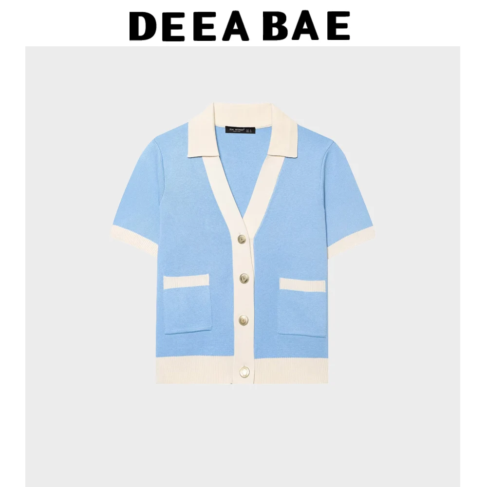 DEEABAE 2025 Summer New Women’s Clothing Simple And Fashionable Lapel Short Sleeved Knitted Jacket Mini Skirt Set