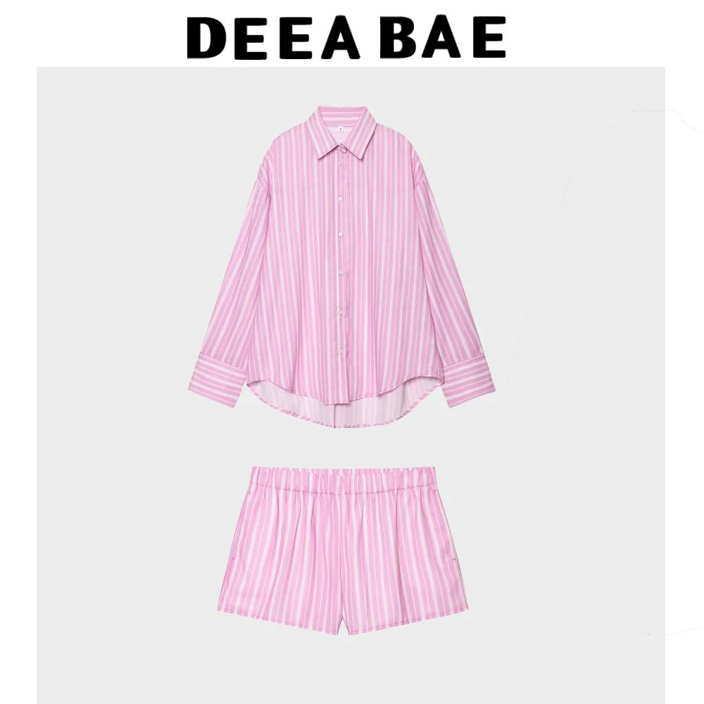DEEABAE 2025 Summer New Women's Commuting Versatile Fashion Striped Loose Shirt Middle Waist Casual Shorts Set