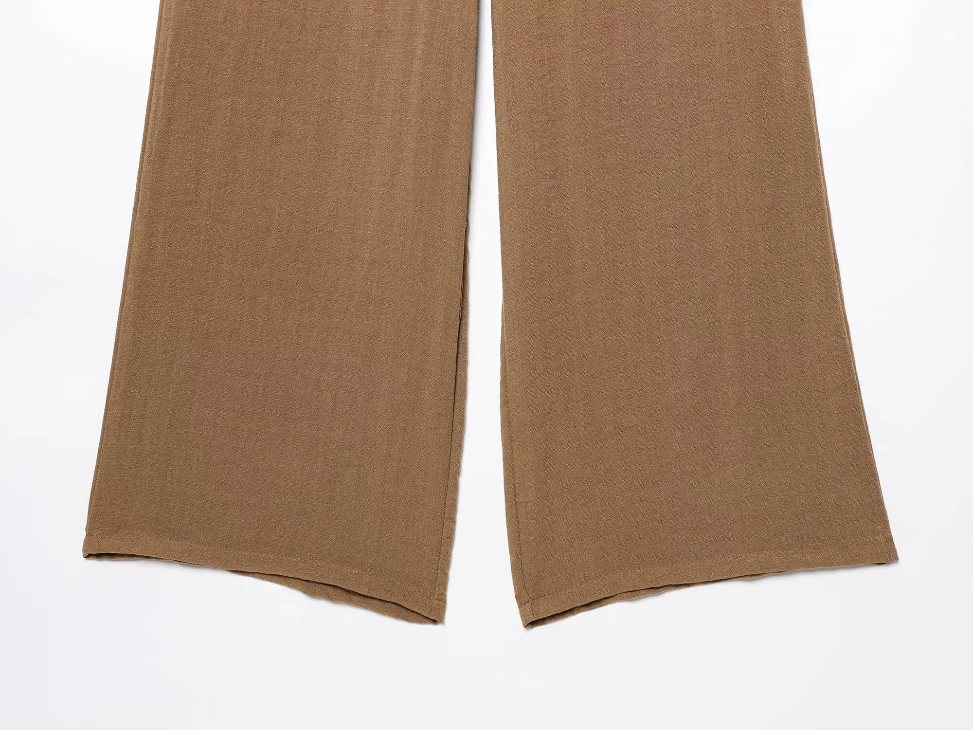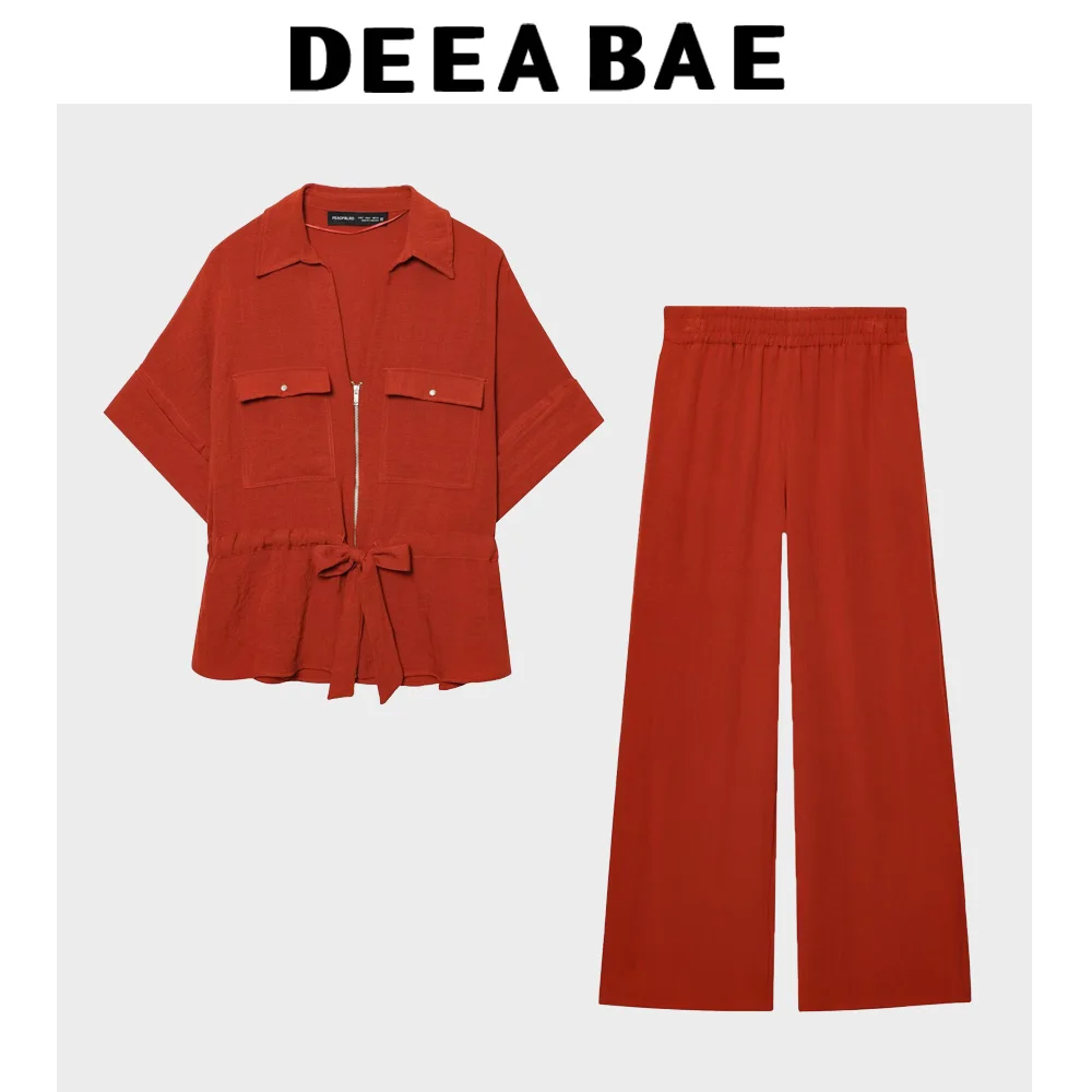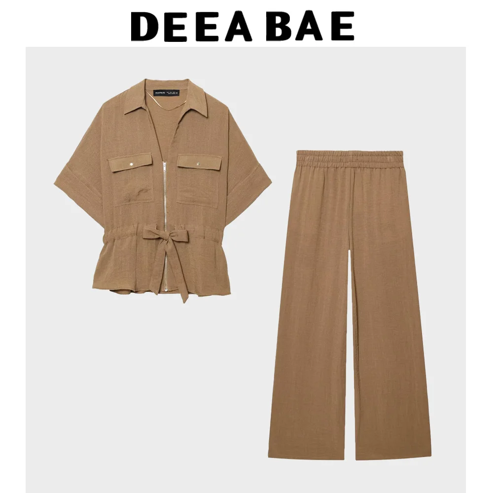 DEEABAE 2025 Summer New Women’s Fashion Simple Hunting style Loose Shirt Elastic Waist Wide Leg Pants Set