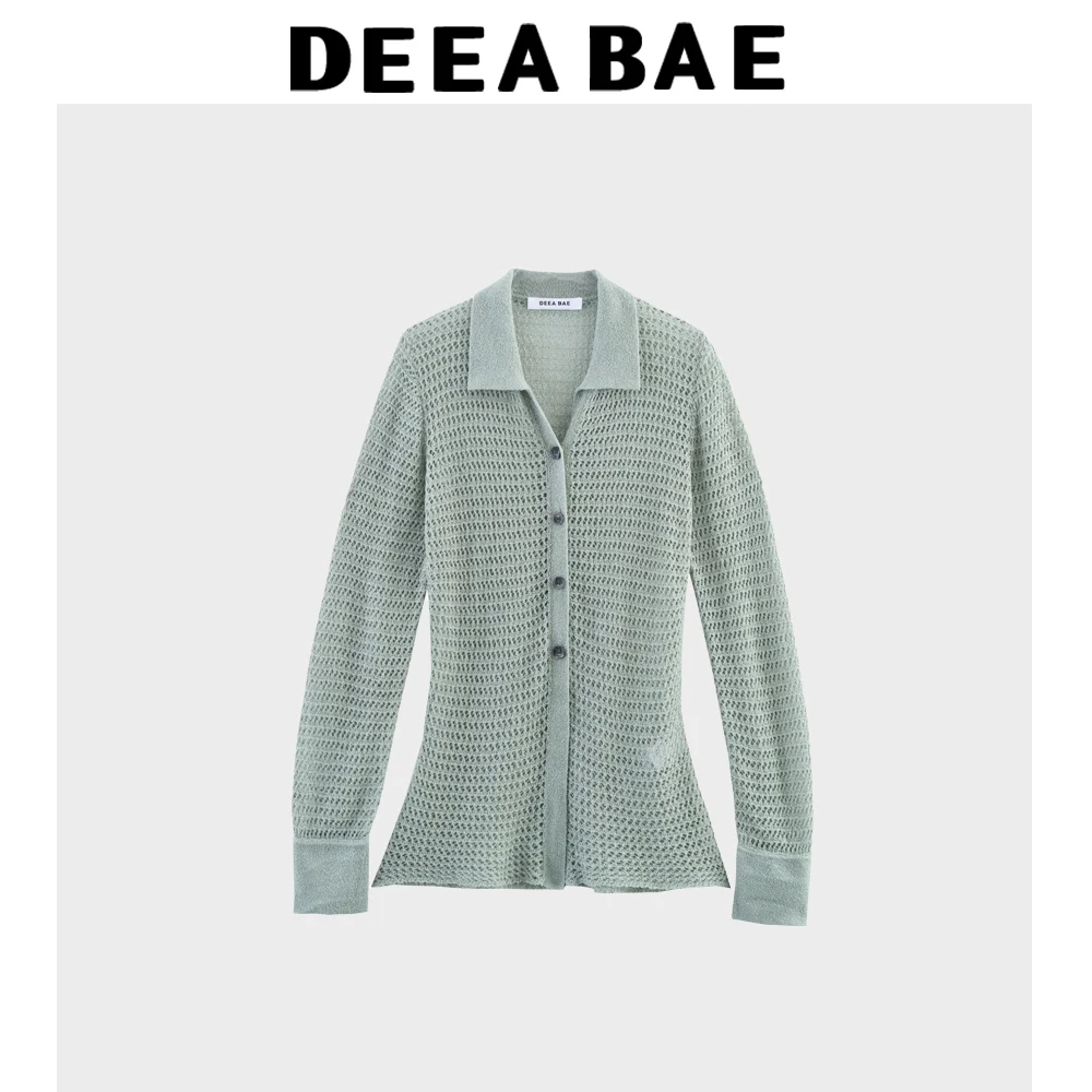 DEEABAE 2025 Summer New Women's Fashion Slim Fit Versatile Temperament Splicing Cutting POLO Collar Knitted Shirt