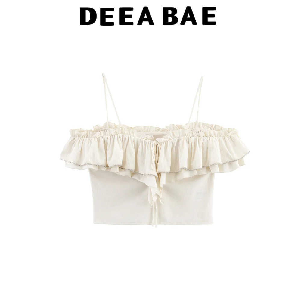 DEEABAE 2025 Summer New Women’s Fashion Style Bead Decoration Off Shoulder Fashion Style Short Top